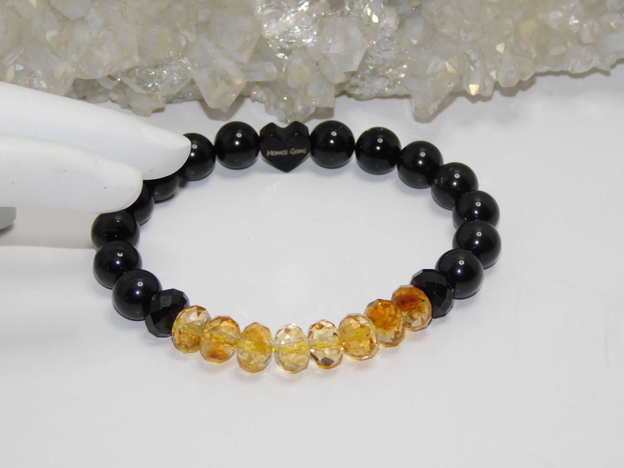MomosGems Jewelry is custom-made and handmade. When choosing the size of your bracelets, please provide the proper measurements. We work with measurements in inches. When selecting the size of your bracelets, please add .25 inches more to your measurements. For example, if your wrist measures 6.5″, order your bracelet 6.75″. We always pre-stretch our elastic cords; therefore, the bracelet will fit exact measurements for a long time.