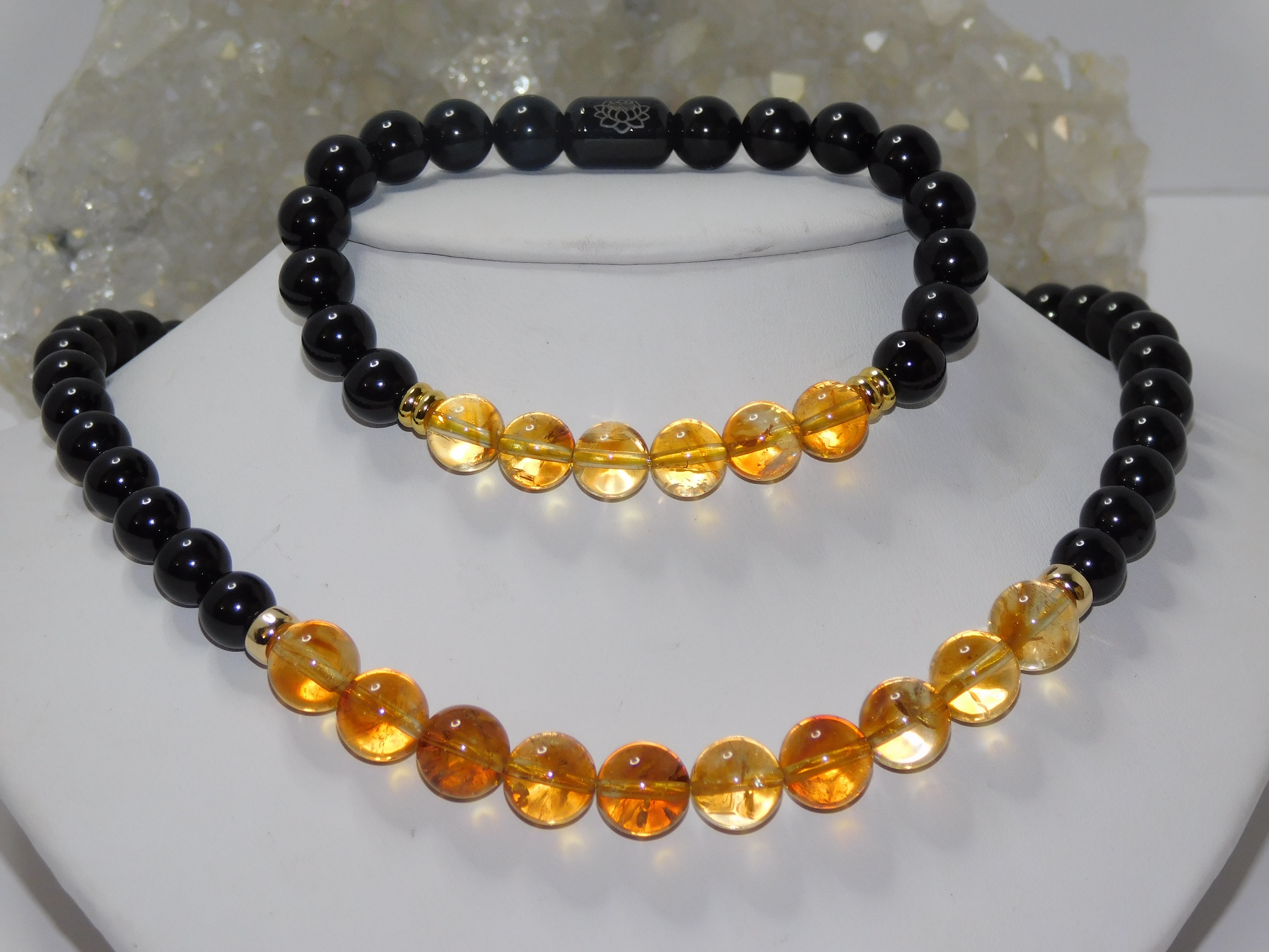 MomosGems Jewelry comes with an accent bead in either Sterling Silver, Sterling Silver Gold, or Sterling Silver Black, in a Circular, Oval, Cylinder, or round shape. On one side of the bead is the symbol of the Lotus Flower, symbolizing spirituality, enlightenment, and peace. On the inside is our logo, MomosGems.