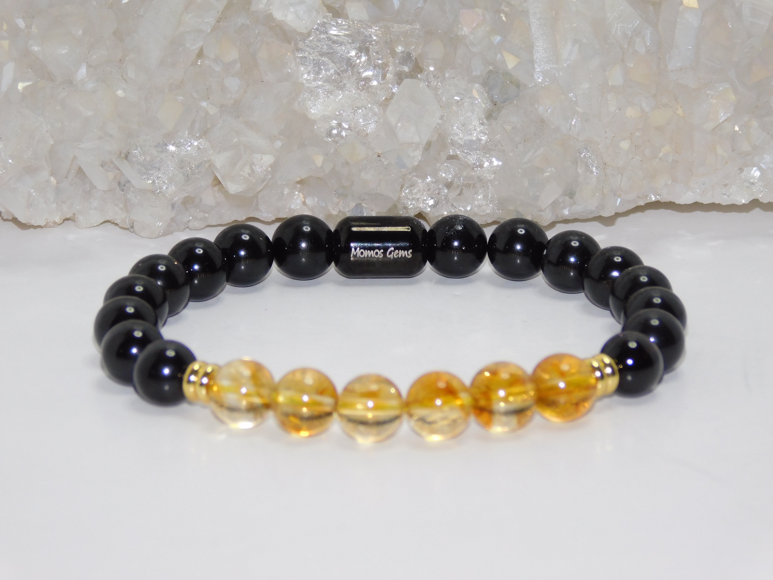 MomosGems Jewelry is custom-made and handmade. When choosing the size of your bracelets, please provide the proper measurements. We work with measurements in inches. When selecting the size of your bracelets, please add .25 inches more to your measurements. For example, if your wrist measures 6.5″, order your bracelet 6.75″. We always pre-stretch our elastic cords; therefore, the bracelet will fit exact measurements for a long time.