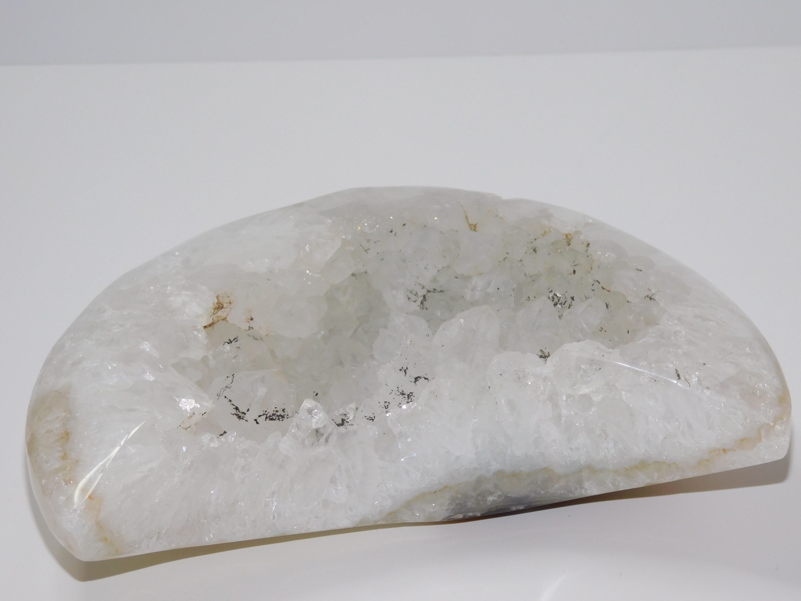 Metaphysical Properties of Agate Quartz:  Agate is formed from microscopic quartz crystals. It stabilizes the aura and eliminates and transforms negative energies. Agates are grounding stones that bring about emotional, physical, and intellectual balance. Agates are known to improve concentration. Agates with clear crystals such as this stone stimulate memories. This stone overcomes negativity and bitterness of the heart.  It is known to channel shining light on your pathway to bring balance and harmony. Because it embodies the energy of light, connecting with a Moonstone crystal raises your vibration and uplifts your spirit.
