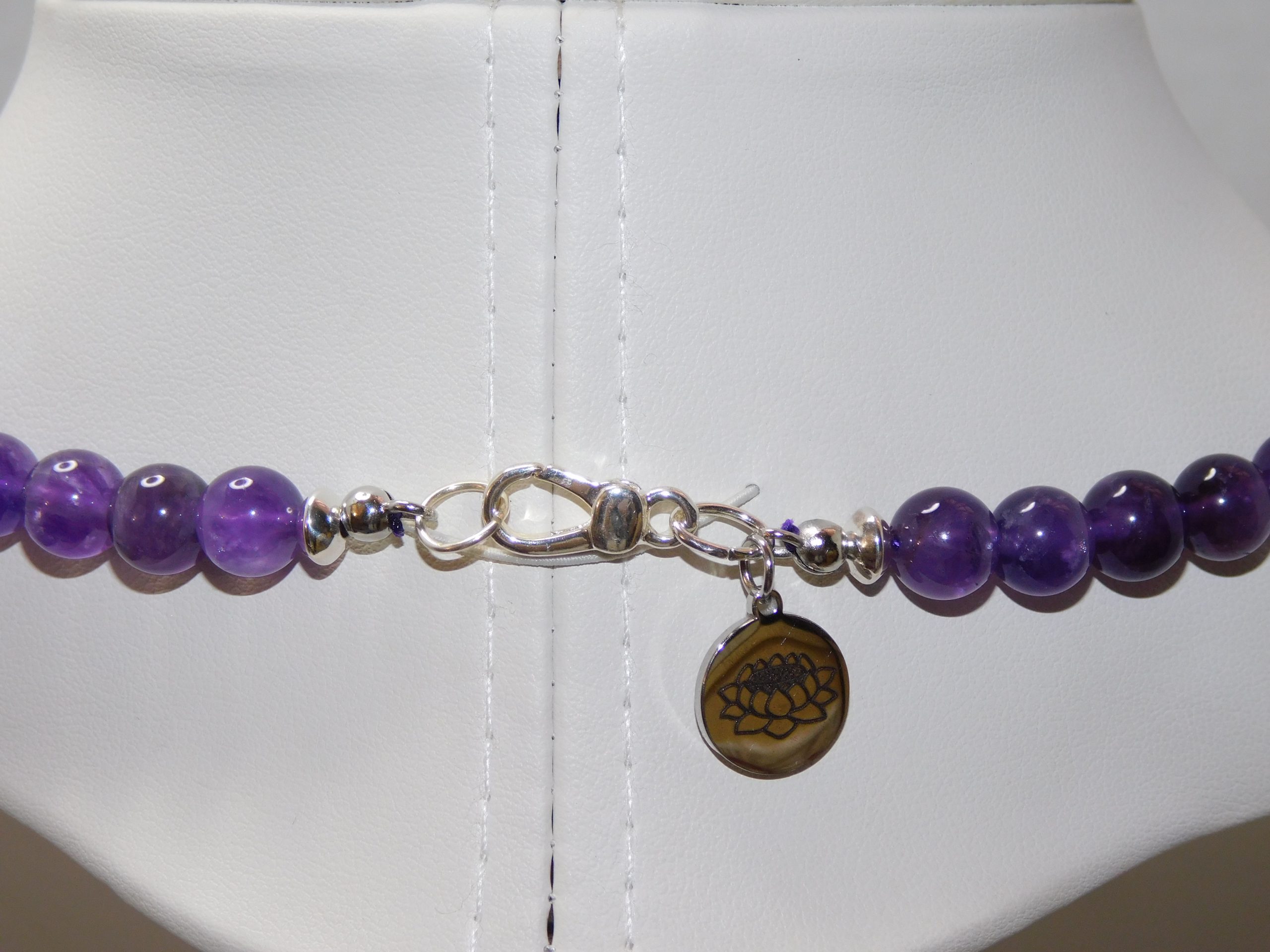 MomosGems Jewelry comes with an accent bead in either Sterling Silver, Sterling Silver Gold, or Sterling Silver Black, in a Circular, Oval, Cylinder, or round shape. On one side of the bead is the symbol of the Lotus Flower, symbolizing spirituality, enlightenment, and peace. On the inside is our logo, MomosGems.