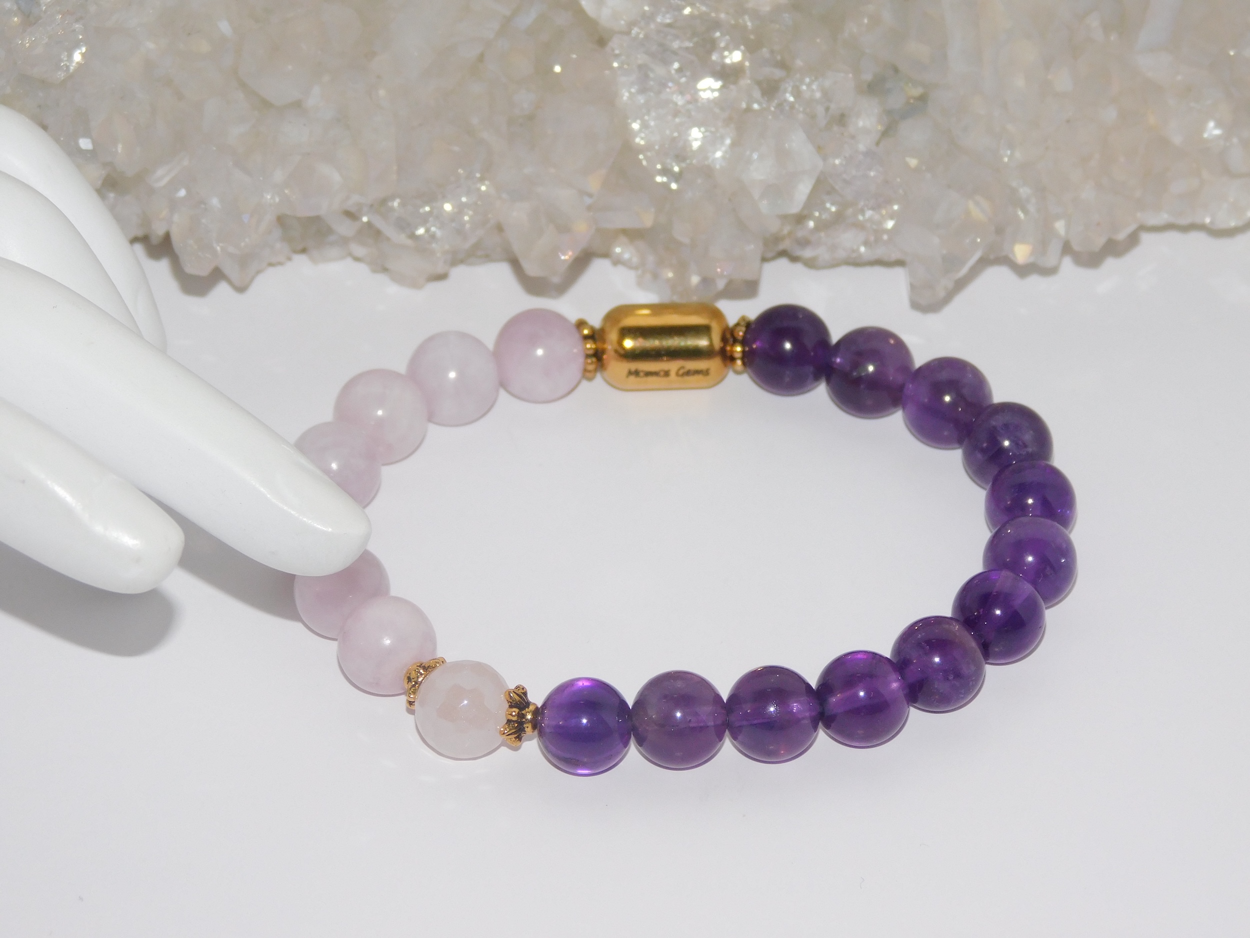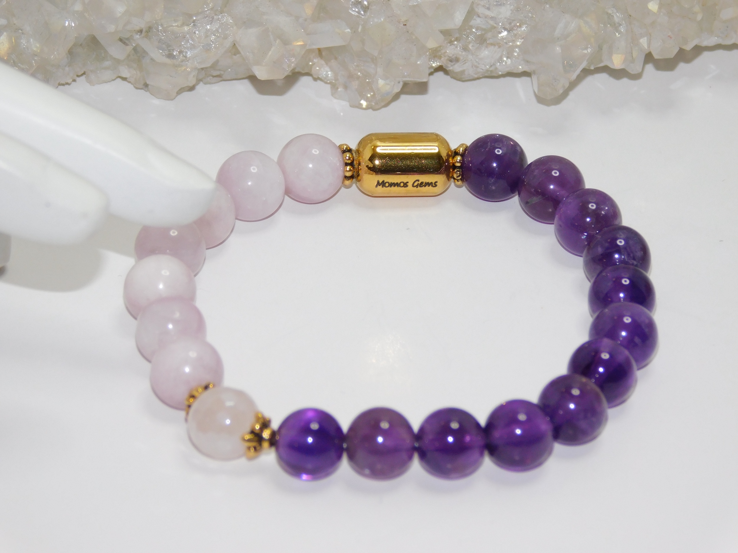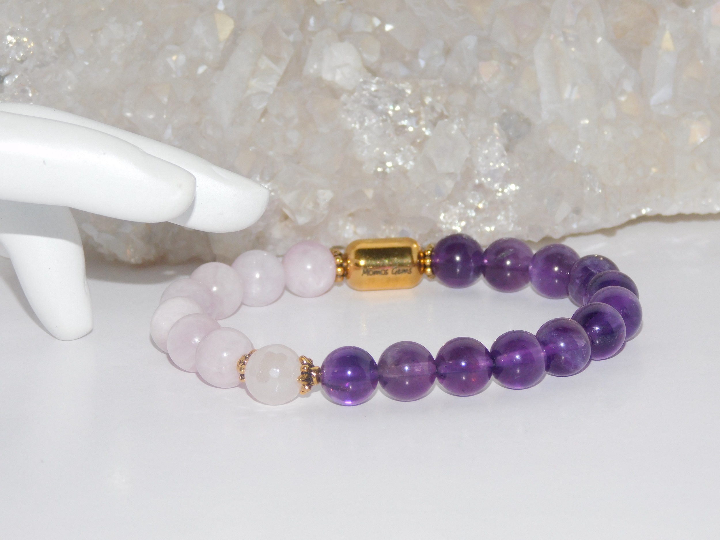 MomosGems Jewelry is custom-made and handmade. When choosing the size of your bracelets, please provide the proper measurements. We work with measurements in inches. When selecting the size of your bracelets, please add .25 inches more to your measurements. For example, if your wrist measures 6.5″, order your bracelet 6.75″. We always pre-stretch our elastic cords; therefore, the bracelet will fit the exact measurements for a long time.