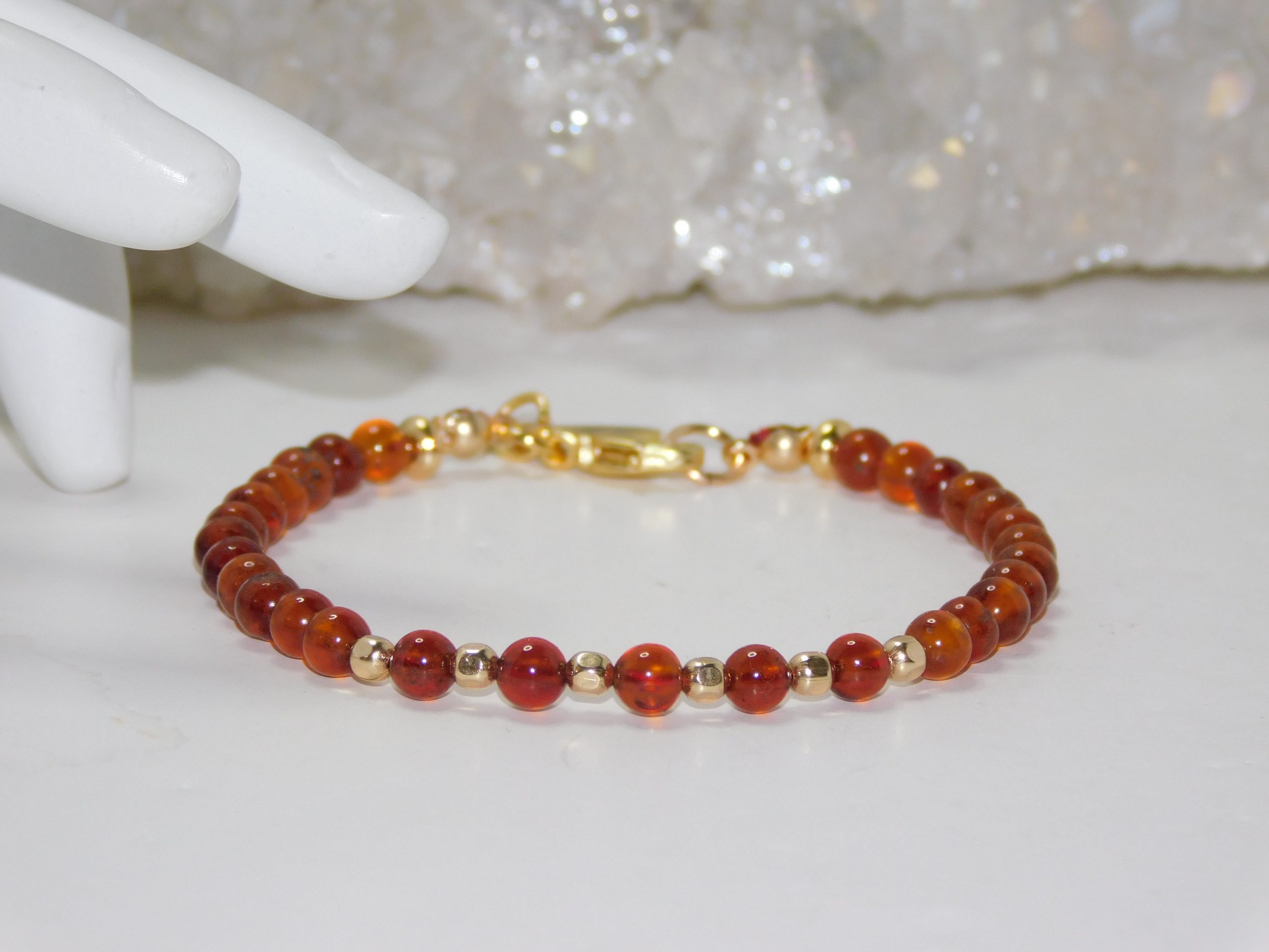 MomosGems Jewelry is custom-made and handmade. When choosing the size of your bracelets, please provide the proper measurements. We work with measurements in inches. When selecting the size of your bracelets, please add .25 inches more to your measurements. For example, if your wrist measures 6.5″, order your bracelet 6.75″.
