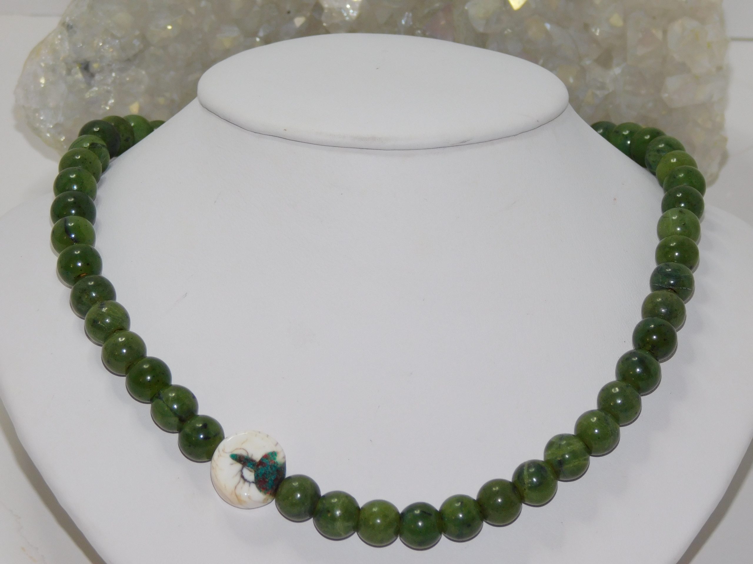 Metaphysical Properties of Green Jade: Green Jade, often referred to as Nephrite, is a captivating Gemstone that hails from the lush landscapes of North America. This stunning silicate mineral, rich in Calcium and Magnesium, boasts a vibrant green hue that evokes the essence of nature’s tranquility. Revered for its powerful metaphysical properties, this enchanting stone embodies creativity, protection, healing, and wisdom. With its calming presence, Green Jade acts as a formidable shield against stress and negativity, wrapping the wearer in a soothing embrace and creating an impenetrable barrier of serenity. It is celebrated for its aesthetic beauty and as a harbinger of luck and prosperity, inviting abundance and fortune into the lives of those who carry it. Let Green Jade be a guiding light, enhancing your journey through life with its protective and uplifting energies. (Grammarly AI, 2025)