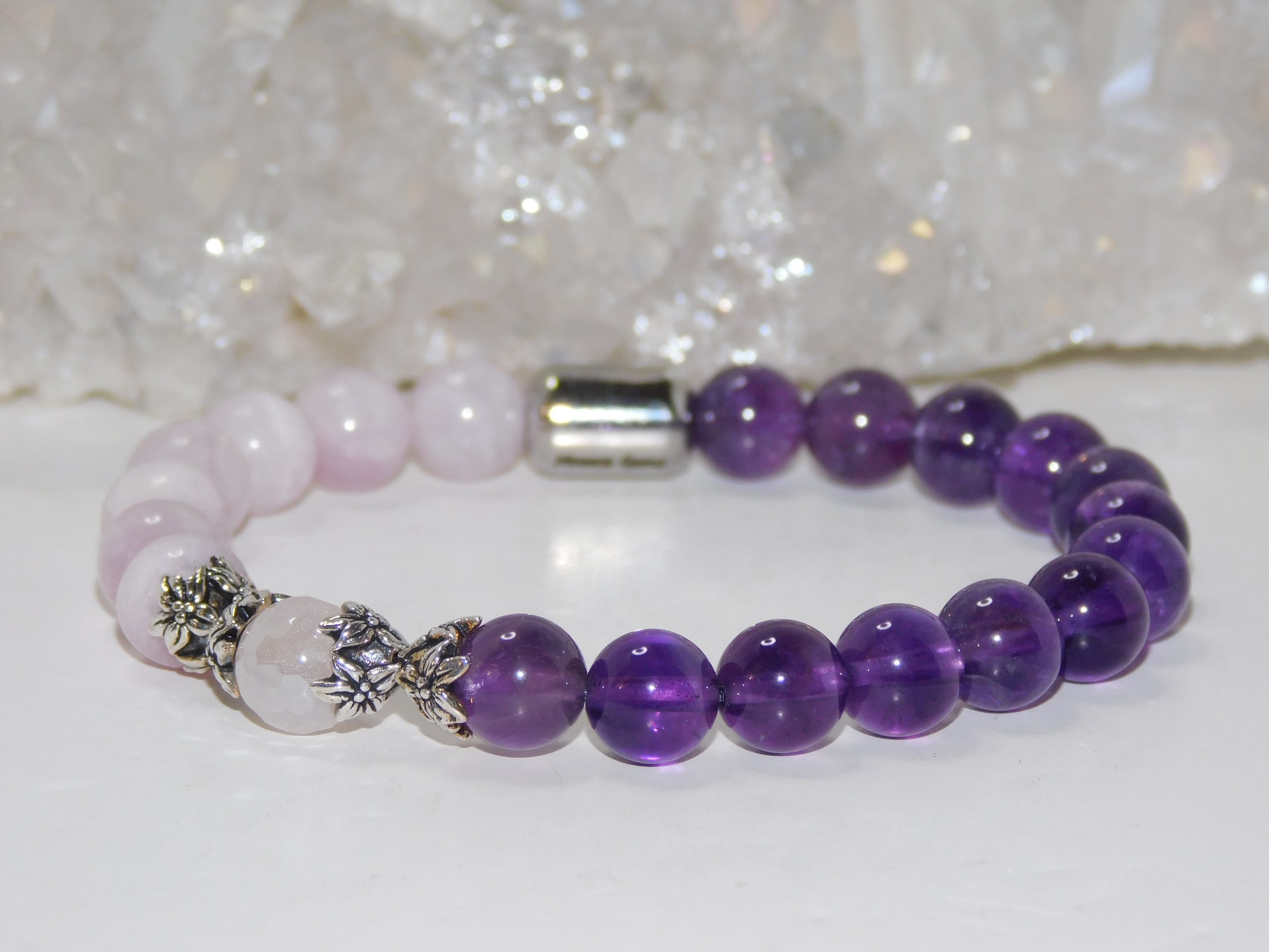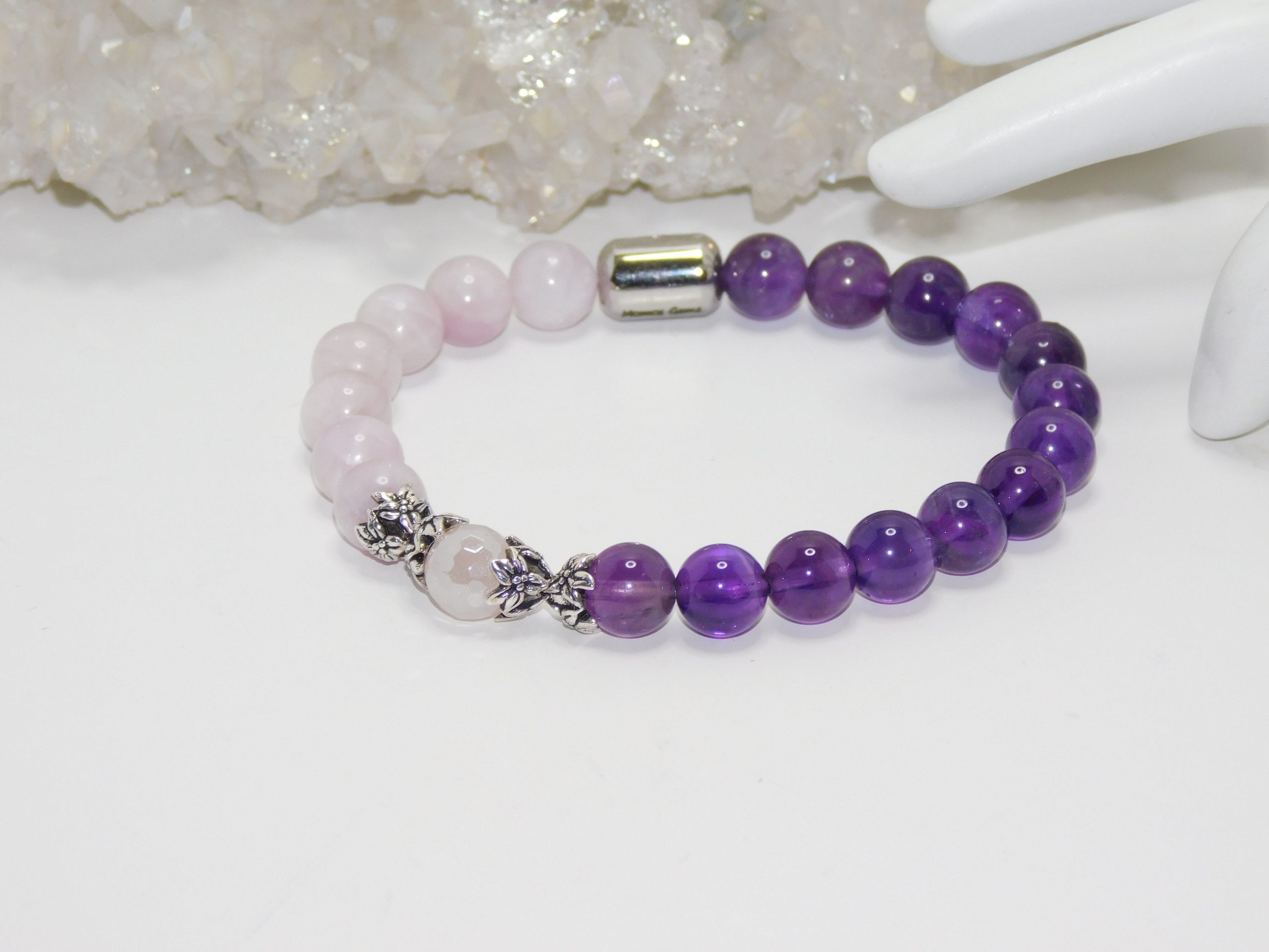 MomosGems Jewelry is custom-made and handmade. When choosing the size of your bracelets, please provide the proper measurements. We work with measurements in inches. When selecting the size of your bracelets, please add .25 inches more to your measurements. For example, if your wrist measures 6.5″, order your bracelet 6.75″. We always pre-stretch our elastic cords; therefore, the bracelet will fit exact measurements for a long time.