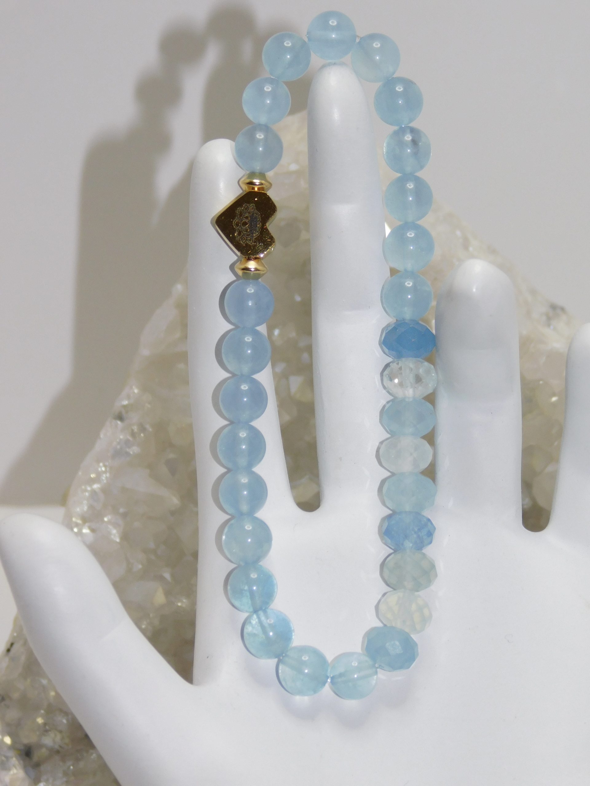 Metaphysical Properties of Blue Aquamarine: Blue aquamarine, a stunning shade of blue-green beryl, is revered for its powerful metaphysical properties. This enchanting gemstone catalyzes spiritual growth, unlocking hidden potentials and enhancing clairvoyance and psychic abilities. Aquamarine embodies a joyful spirit, promoting happiness and “joie de vivre” that uplifts the soul. Aquamarine is particularly beneficial for business professionals. Its vibrant energies enhance ambition and foster persistence in pursuing goals. It acts as a driving force, motivating individuals to stay focused and resilient in their endeavors. On a mental level, aquamarine works wonders by clearing confusion and sharpening intuition, helping one navigate complexities with clarity and confidence. This remarkable stone is known for its protective qualities, adeptly deflecting negativity on all levels and creating a shield that fosters positivity and serenity. (Grammarly AI, 2024)