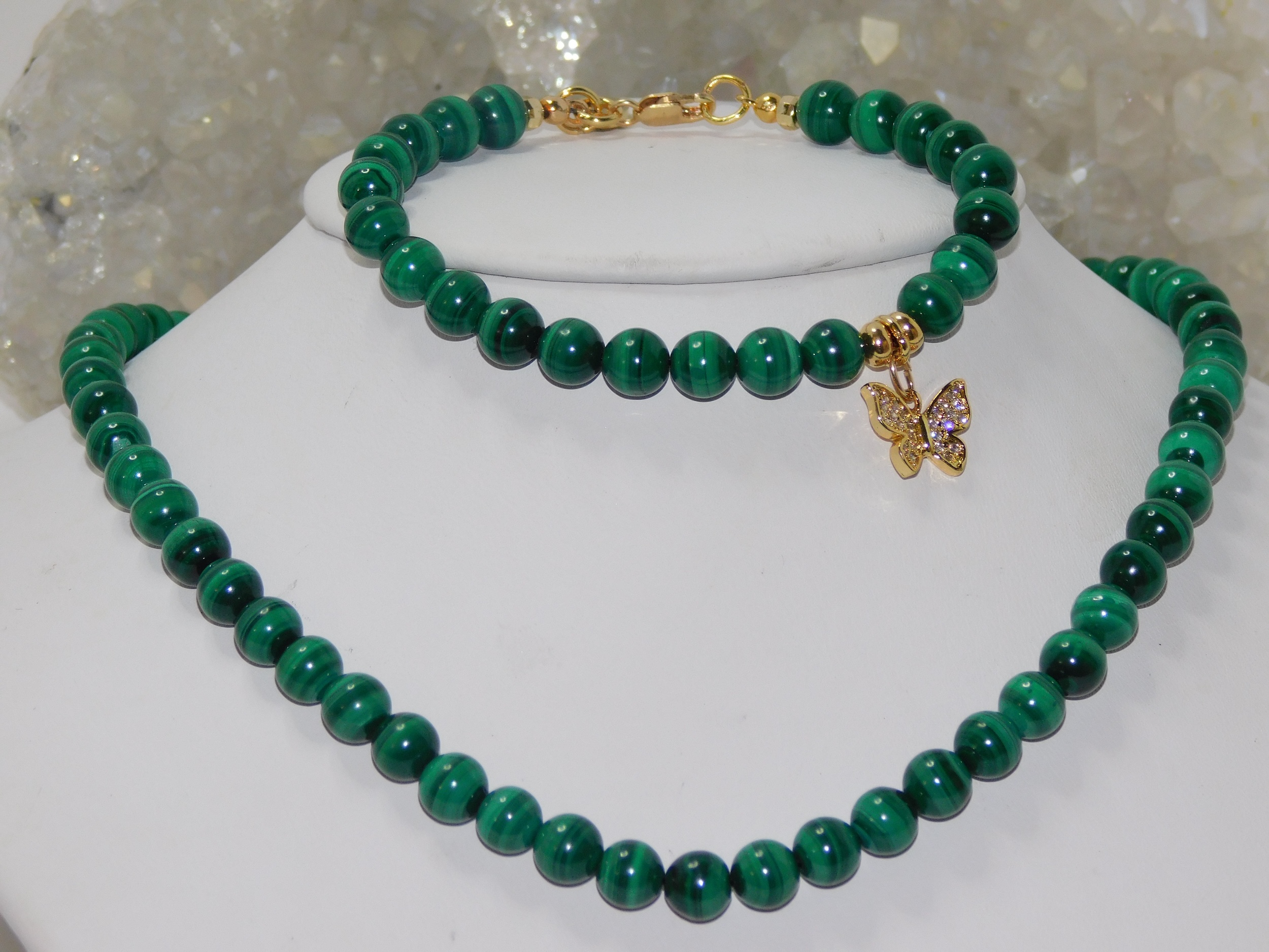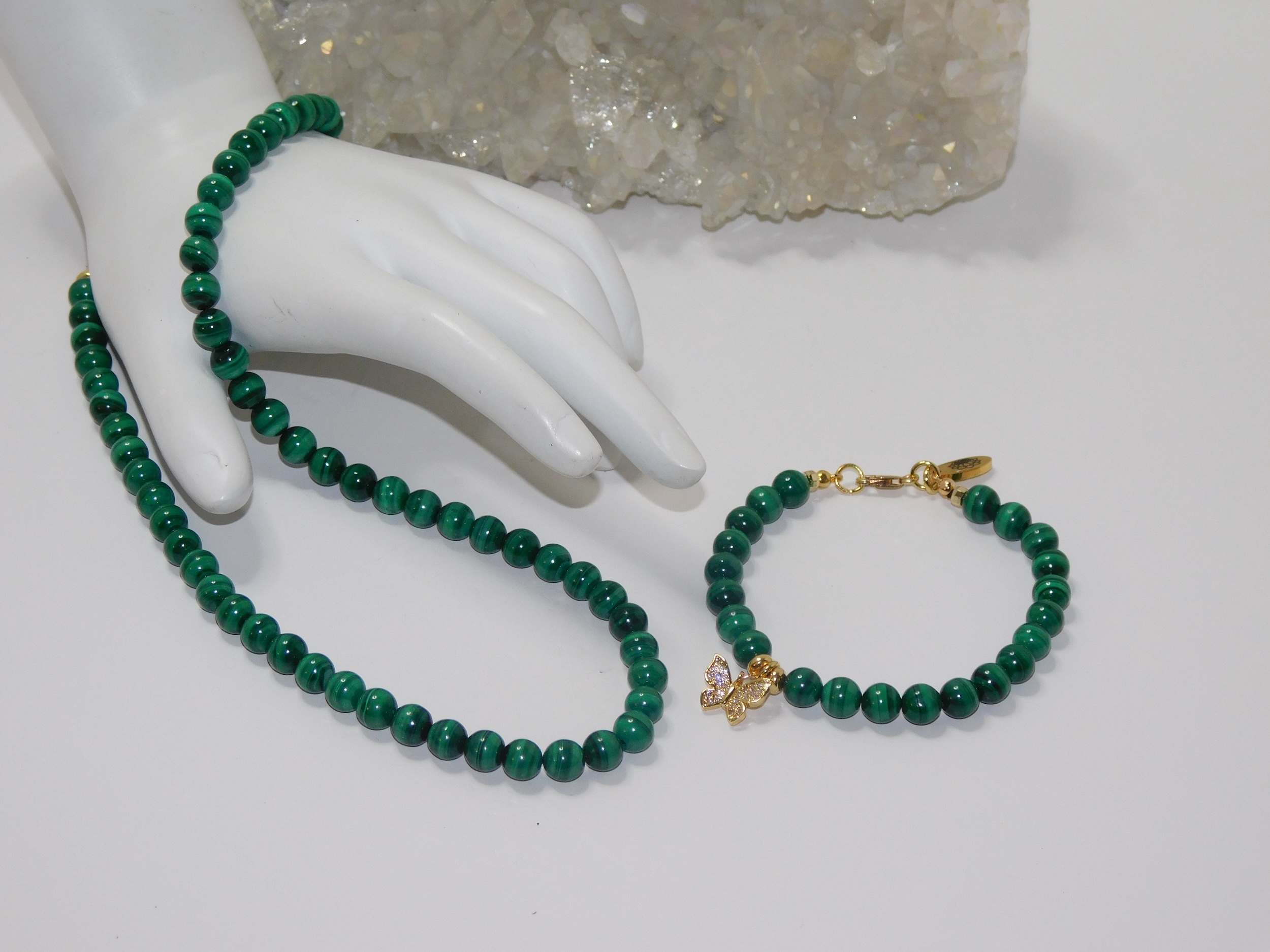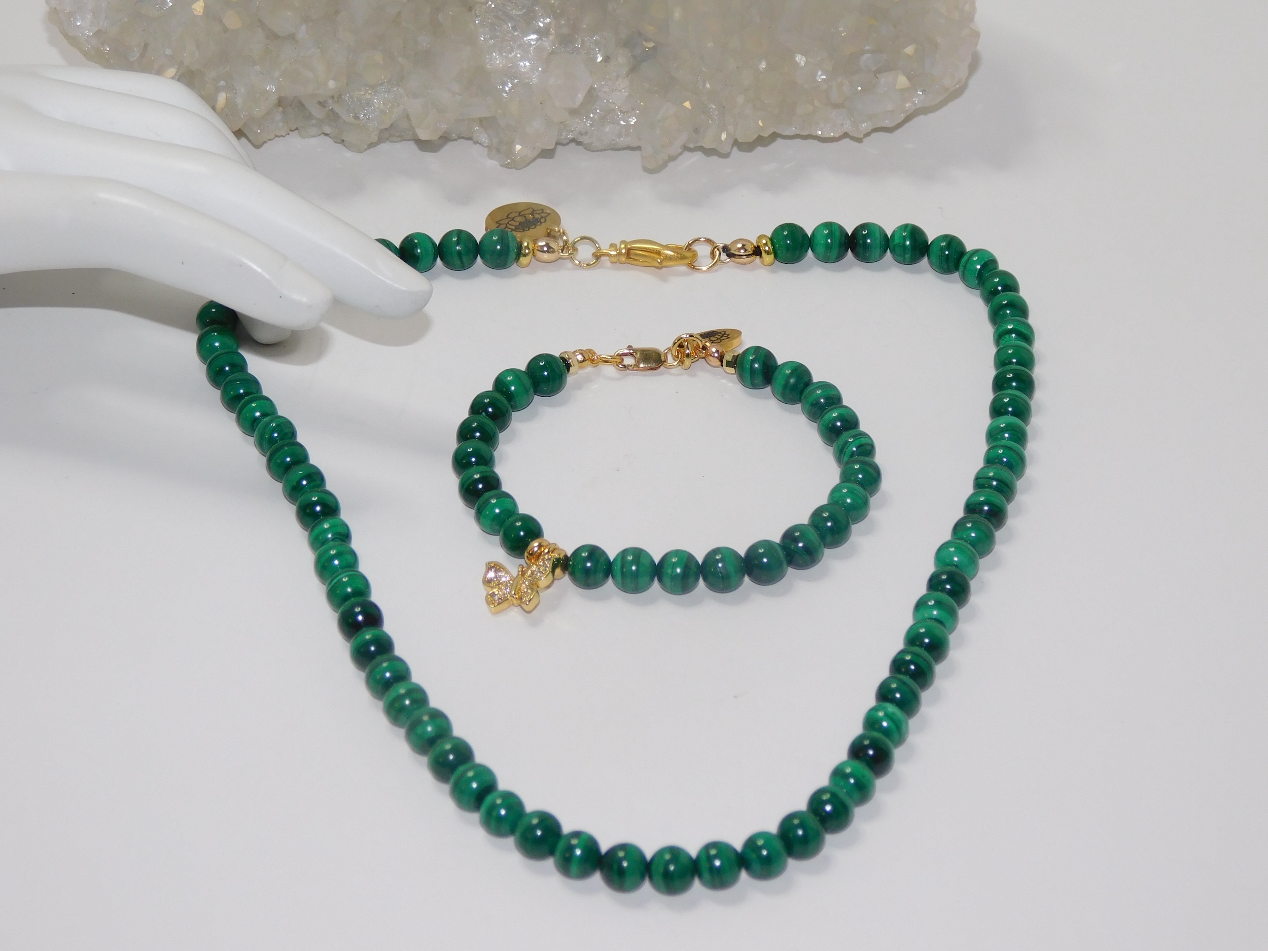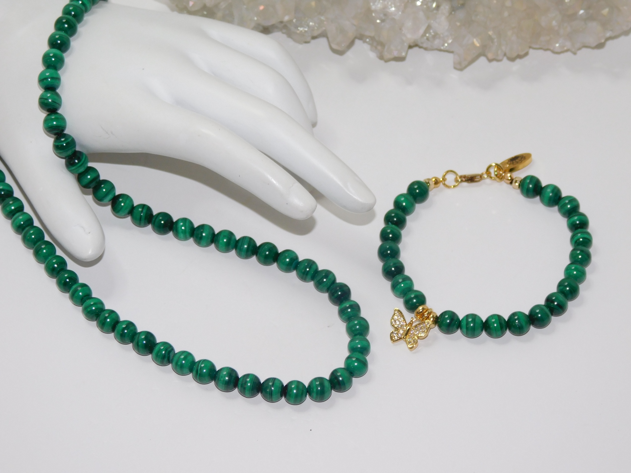 Metaphysical Properties of Malachite: Malachite possesses metaphysical properties as it is a basic copper carbonate formed by the interaction of magmatic solutions with carbonate rocks. This enchanting stone, often called the “stone of transformation,” holds a powerful reputation in the metaphysical realm, believed to uncover and mend deep-seated emotional pain. It is said to soothe stress and dispel feelings of depression, inviting a sense of inner peace and tranquility. Cherished for its potential to attract luck and prosperity, Malachite is known for its ability to balance and open the heart and throat chakras, which enhances one’s intuition and communication. It promotes comforting support during challenging and transitional periods, encouraging personal growth and positive change. With its vibrant green hues and intricate banding, Malachite captivates the eye and nurtures the spirit, making it a beloved ally for those seeking transformation. (Grammarly, 2024)