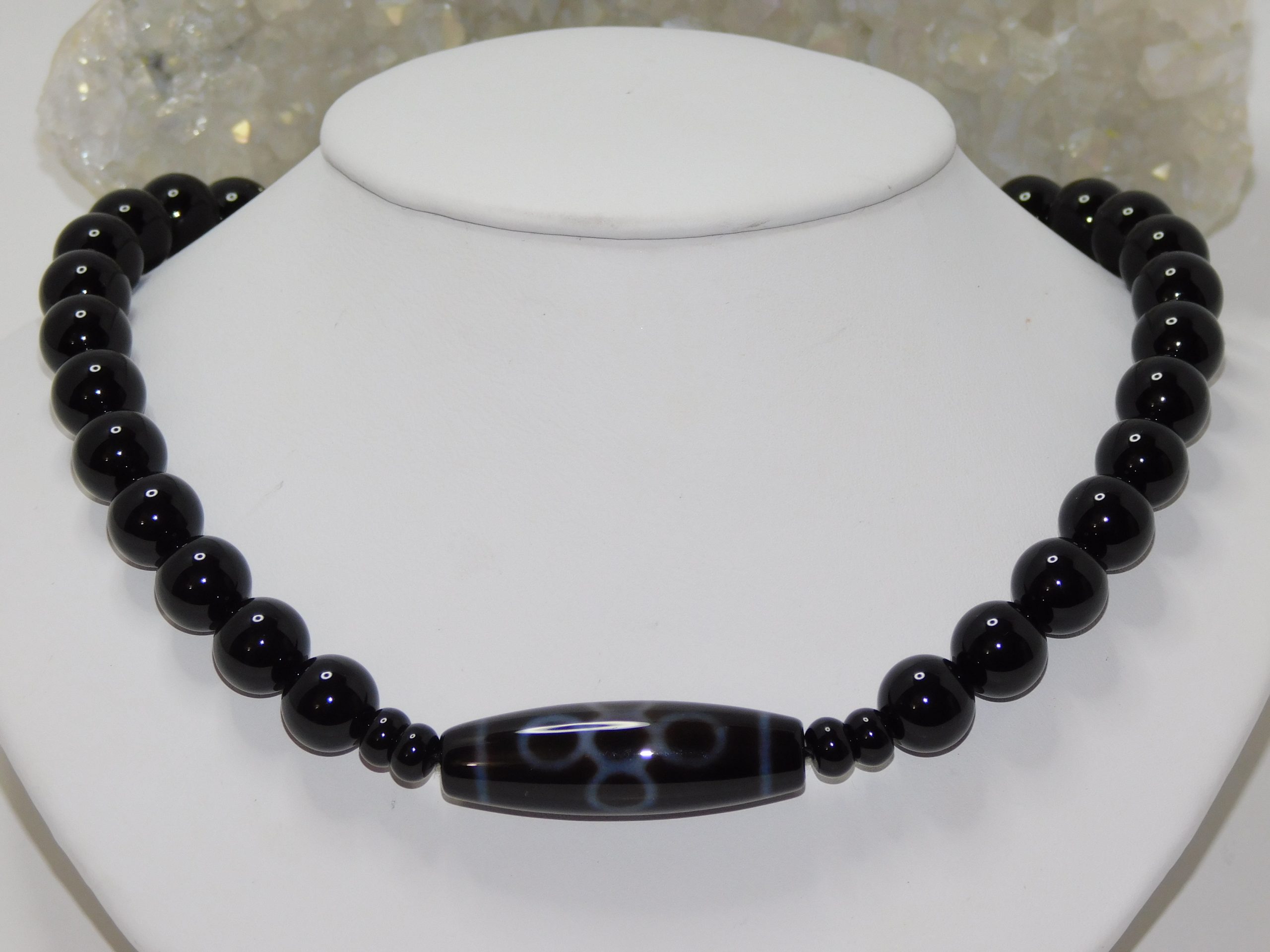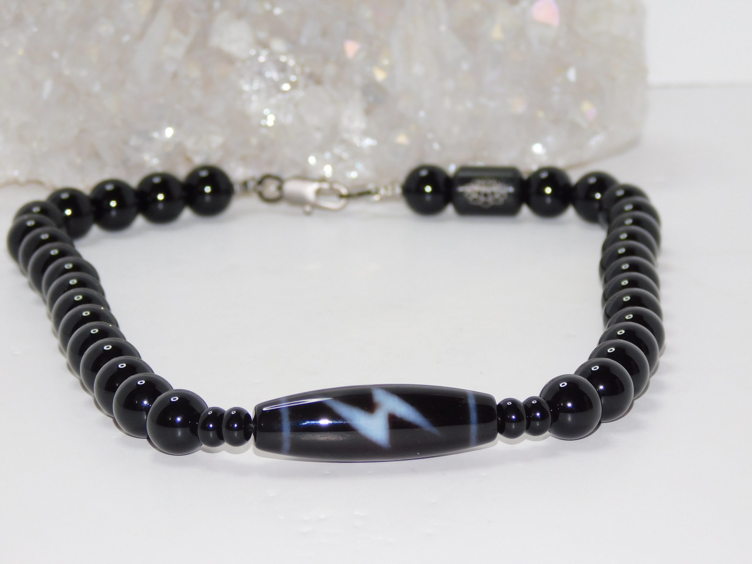 Purchase the Necklace & Bracelet Set and get a Discount: Tibetan Agate Lightning Dzi Bead, & Black Onyx Men Necklace & Bracelet Set.