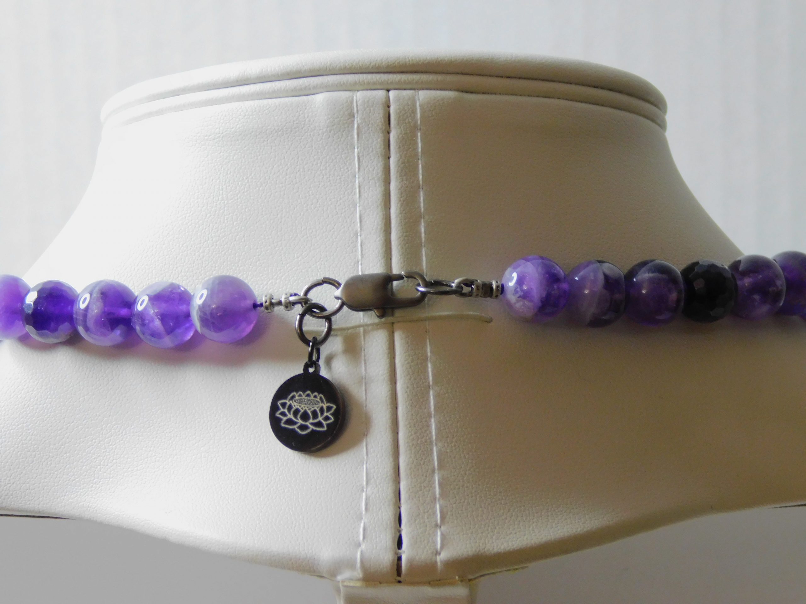 MomosGems Jewelry comes with an accent bead in either Sterling Silver, Sterling Silver Gold, or Sterling Silver Black, in a Circular, Oval, Cylinder, or round shape. On one side of the bead is the symbol of the Lotus Flower, symbolizing spirituality, enlightenment, and peace. On the inside is our logo, MomosGems.