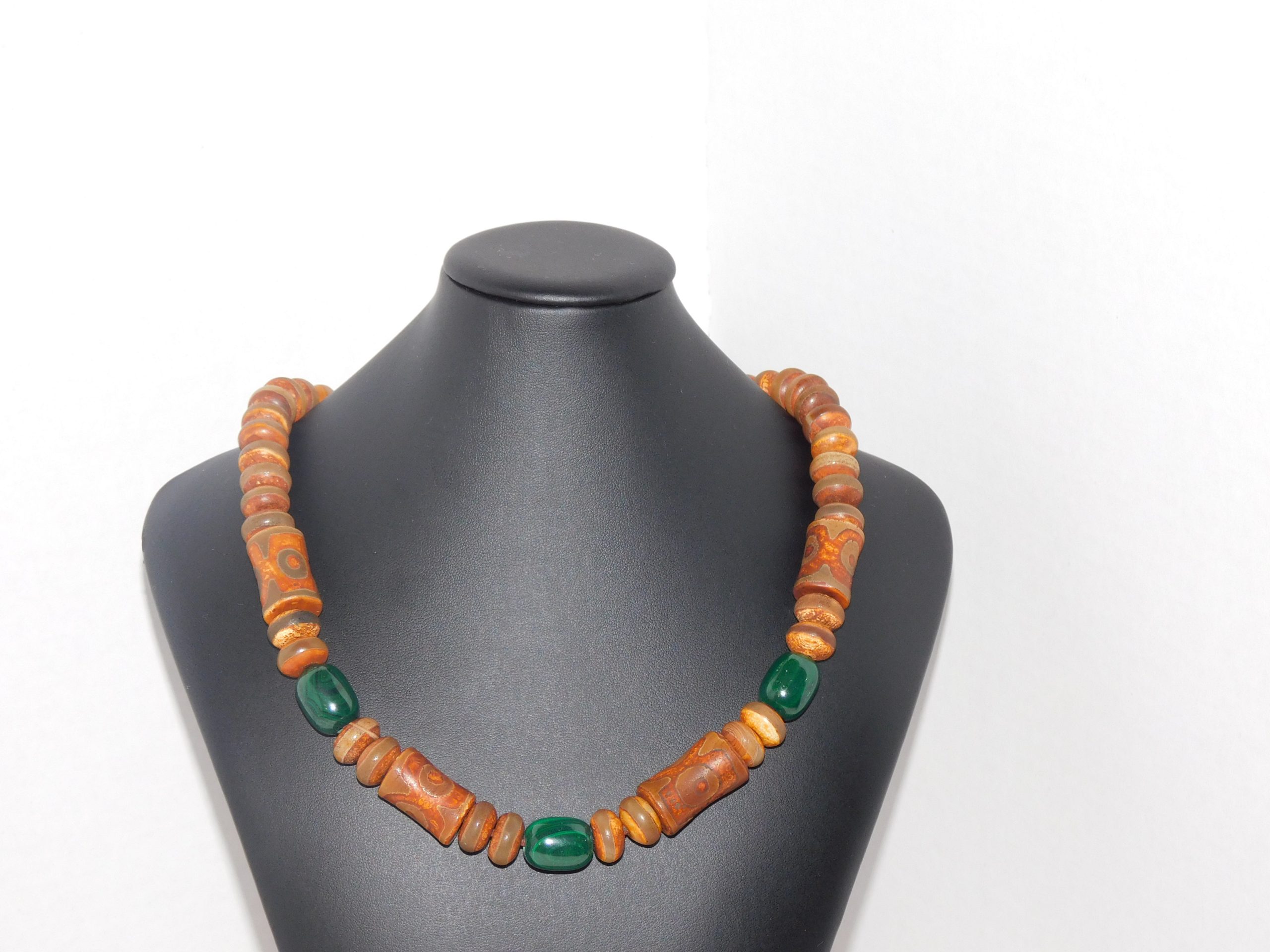 Be the first to review “Tibetan Agate 3-Eye Dzi Bamboo Style & Malachite Men Necklace”
