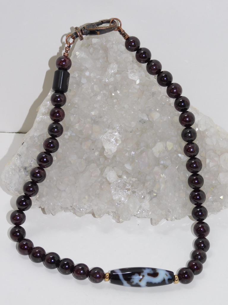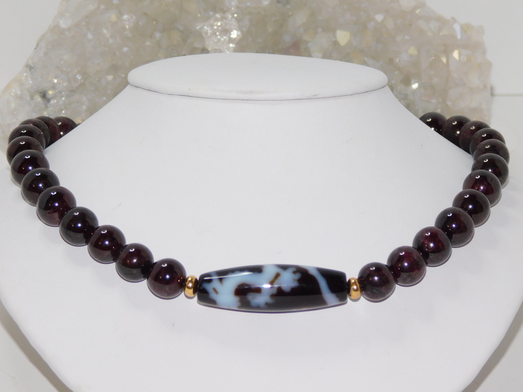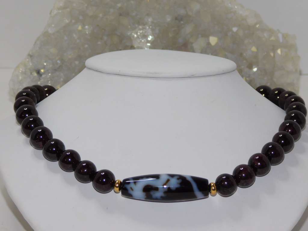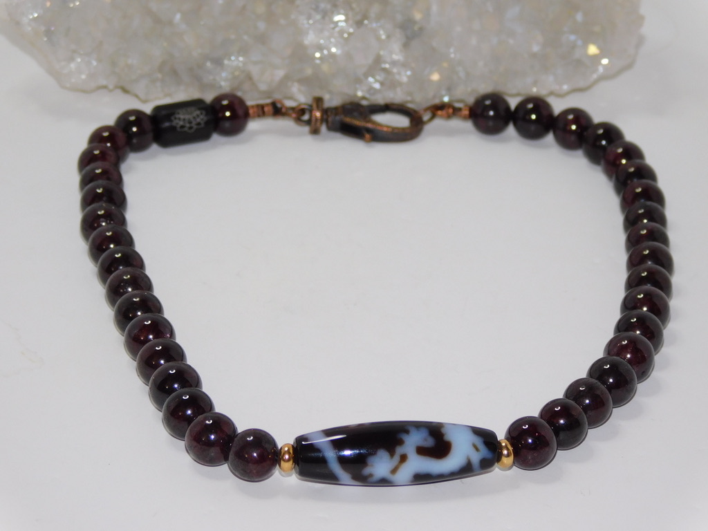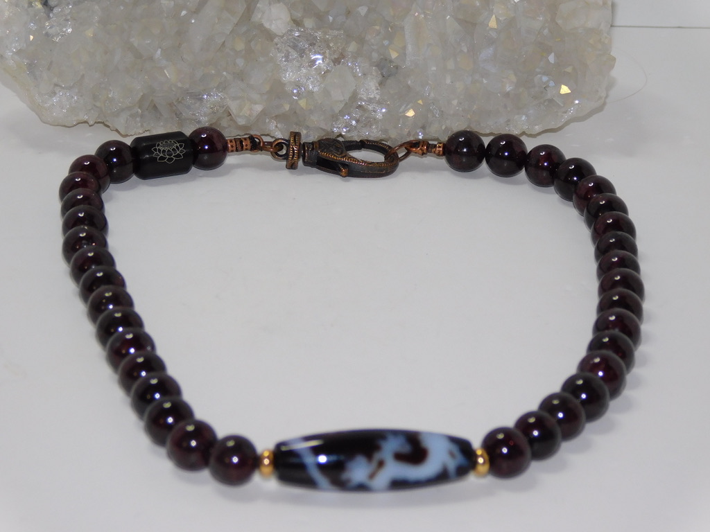 TIBETAN Dzi Bead: Tibetan Dzi Beads (pronounced Zee Beads) are made from Agate and come in oblong, round, cylindrical, or tabular shapes. They are also known as “Heaven’s Beads,” which means “shine, brightness, clearness, splendor.” These beads have been around for about 2,000 years and are closely associated with Tibetan culture, notably Buddhism. The most popular Dzi beads are the Ancient Beads with Eyes, which Tibetans consider a gift from heaven. These beads have intricate designs, often featuring eyes, waves, or symbols, and each pattern is known to carry unique meaning and provide special energy. If you’re selecting Dzi Bead Jewelry, it’s essential to take your time, feel a connection with the bead, and follow the instructions on how to care for it.