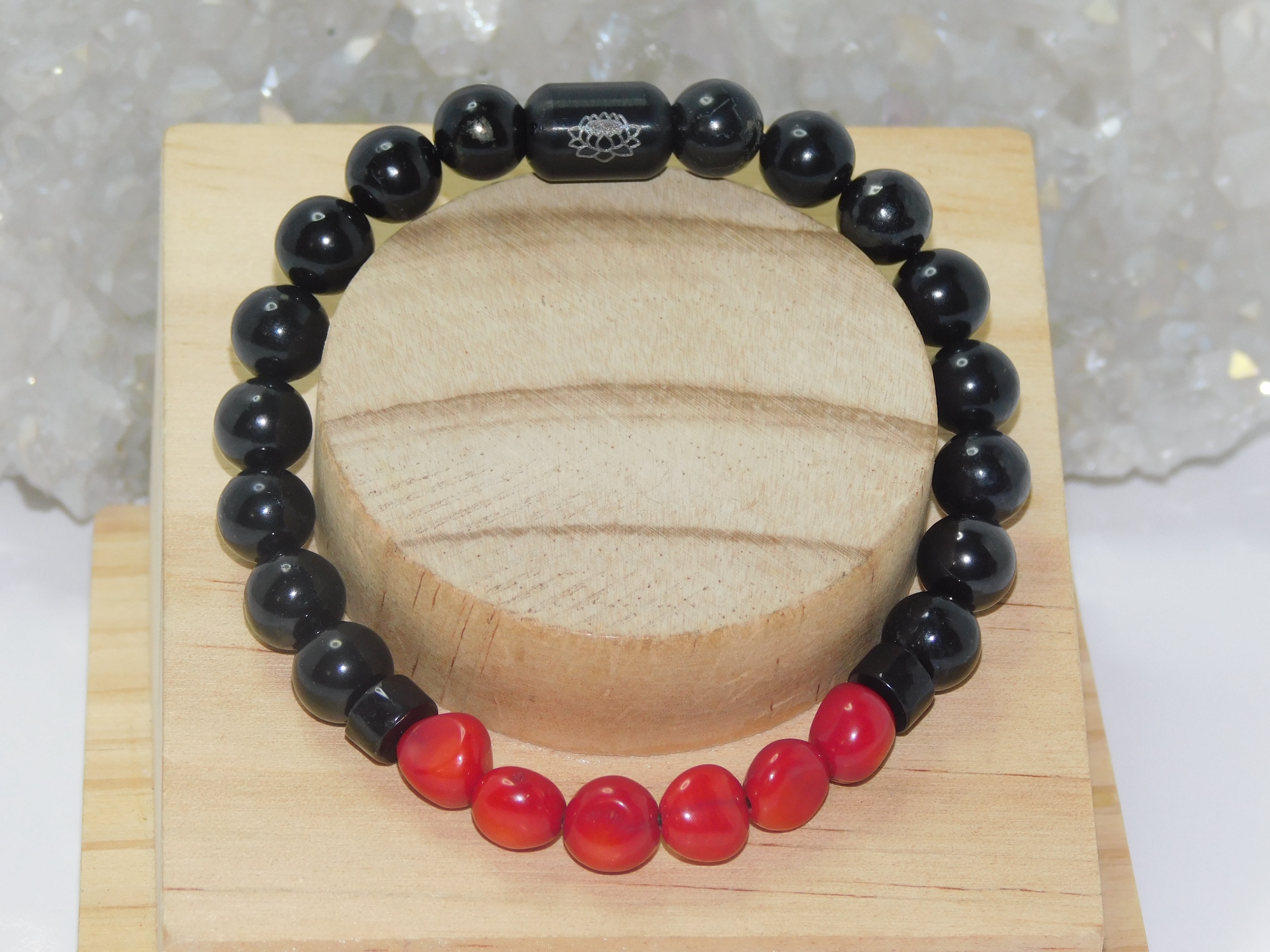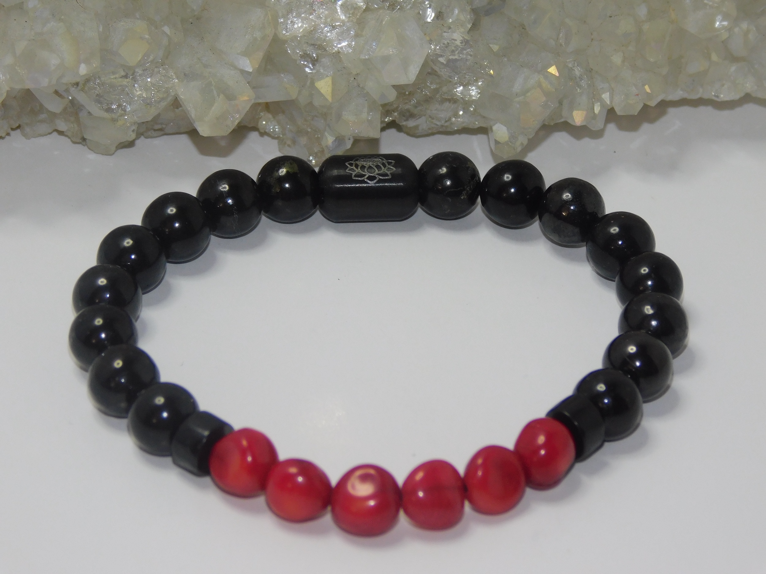 MomosGems Jewelry comes with an accent bead in either Sterling Silver, Sterling Silver Gold, or Sterling Silver Black, in a Circular, Oval, Cylinder, or round shape. On one side of the bead is the symbol of the Lotus Flower, symbolizing spirituality, enlightenment, and peace. On the inside is our logo, MomosGems.