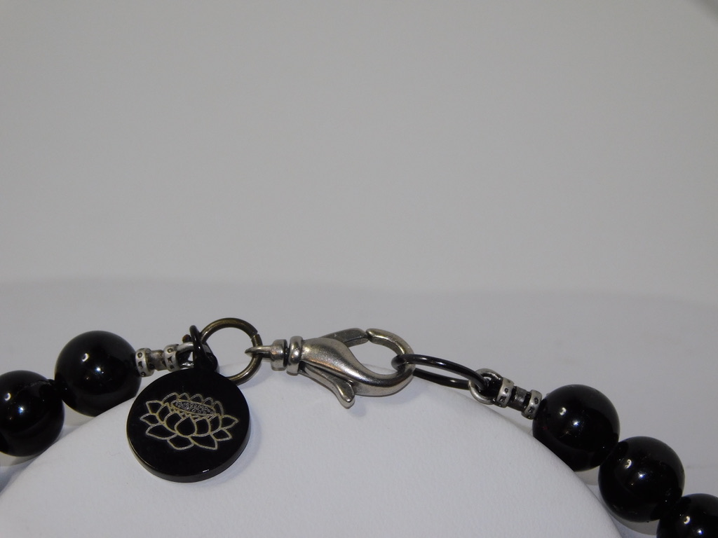 MomosGems Jewelry comes with an accent bead in either Sterling Silver, Sterling Silver Gold, or Sterling Silver Black, in a Circular, Oval, Cylinder, or round shape. On one side of the bead is the symbol of the Lotus Flower, symbolizing spirituality, enlightenment, and peace. On the inside is our logo, MomosGems.