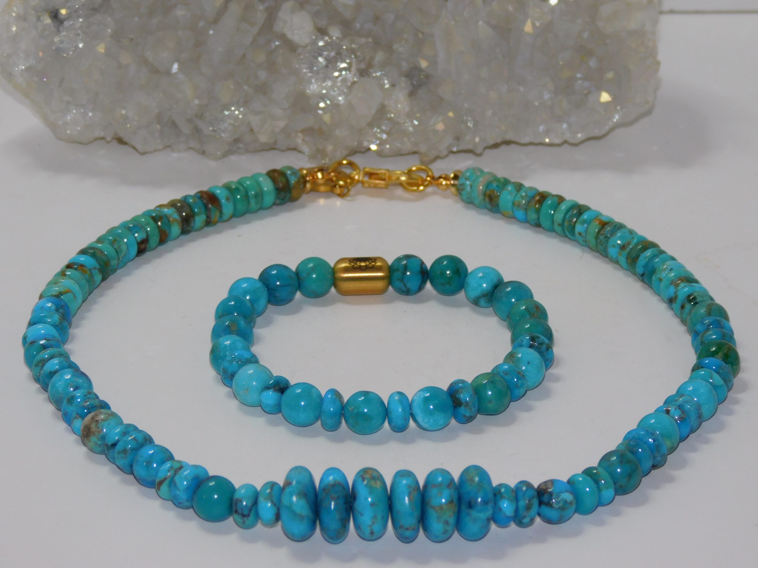 Meaning of Matrix beads: Matrix beads still have the host rock attached to the gemstone, creating a unique look and texture. When the host rock is part of a gemstone, it is known as the rock matrix. Some of these turquoise beads include parts of the host rock, making them distinct and visually engaging as matrix beads.