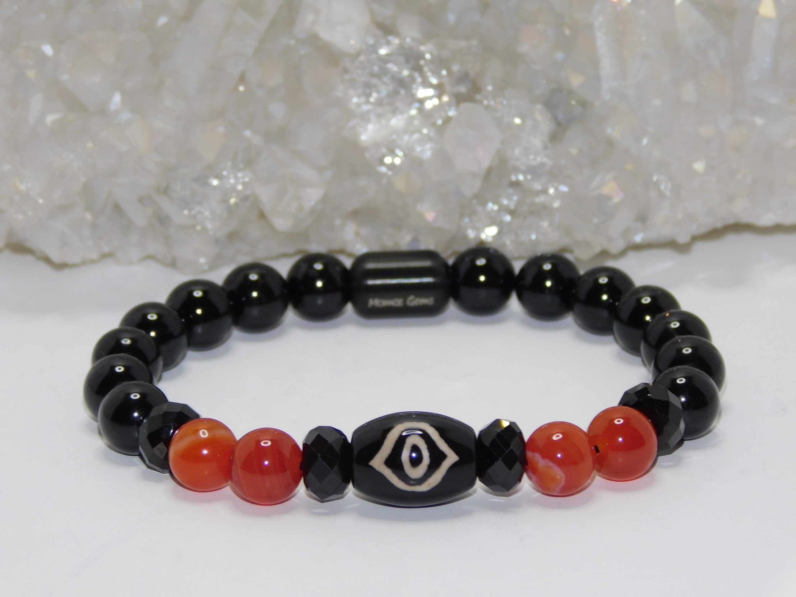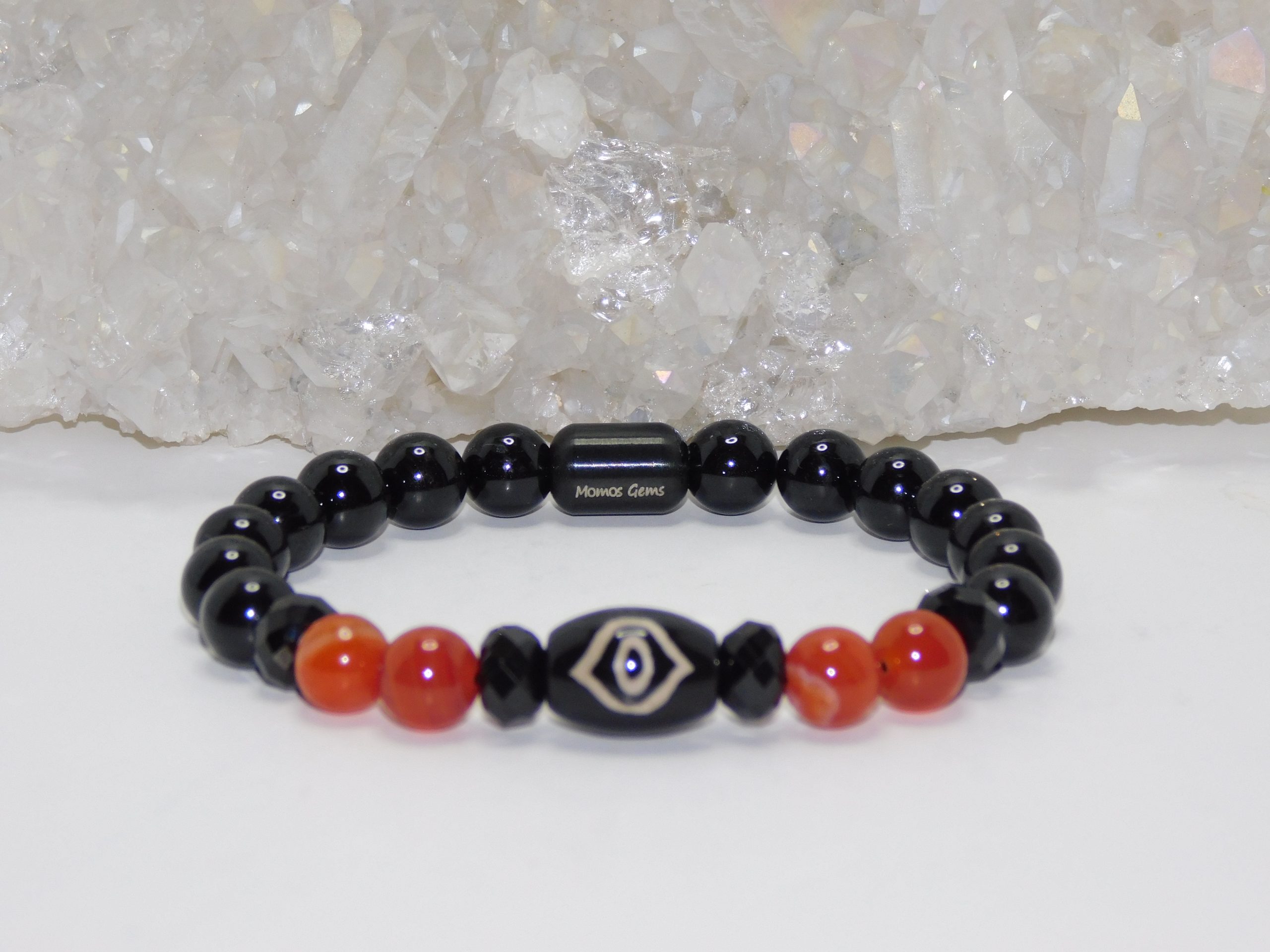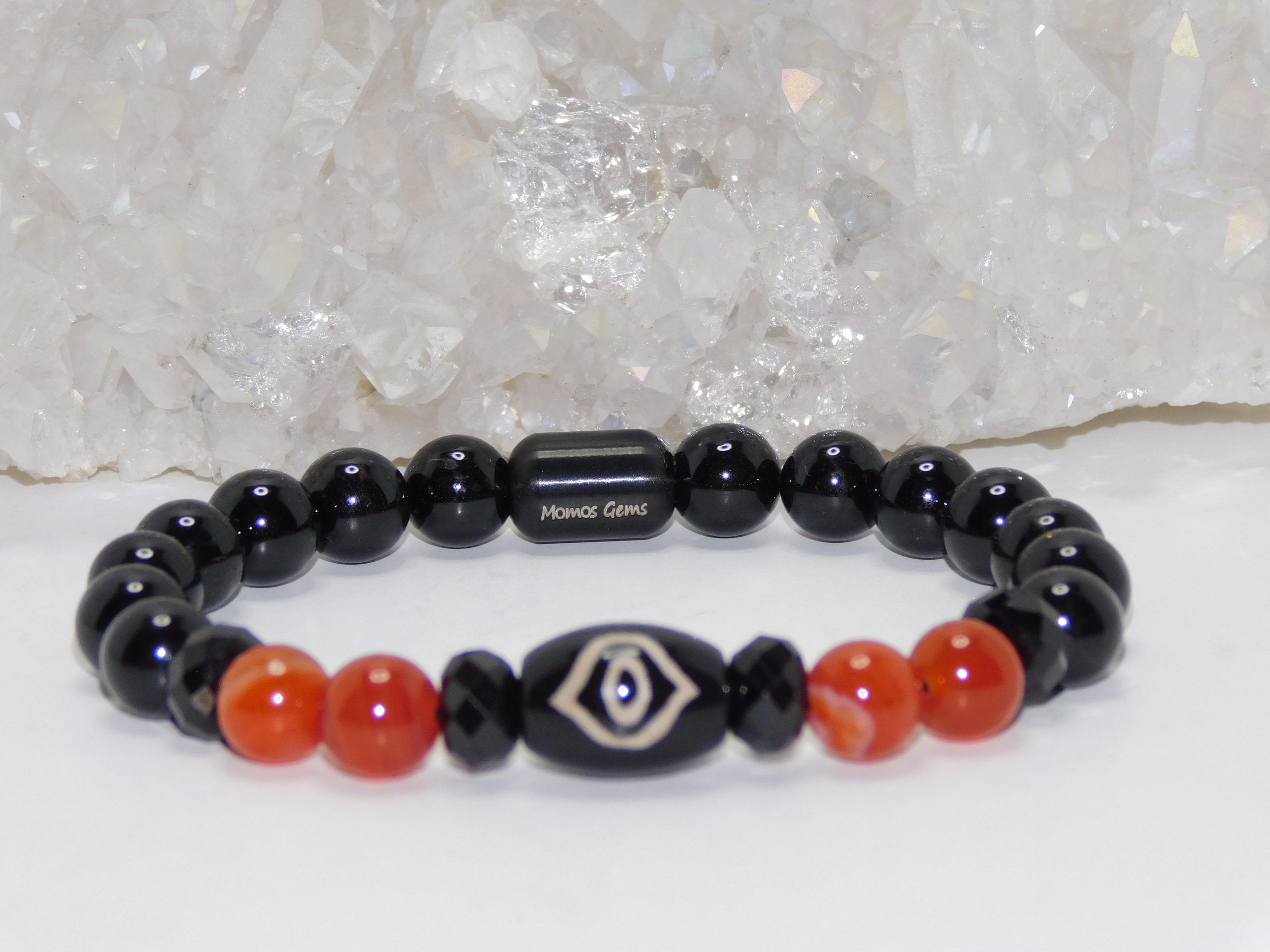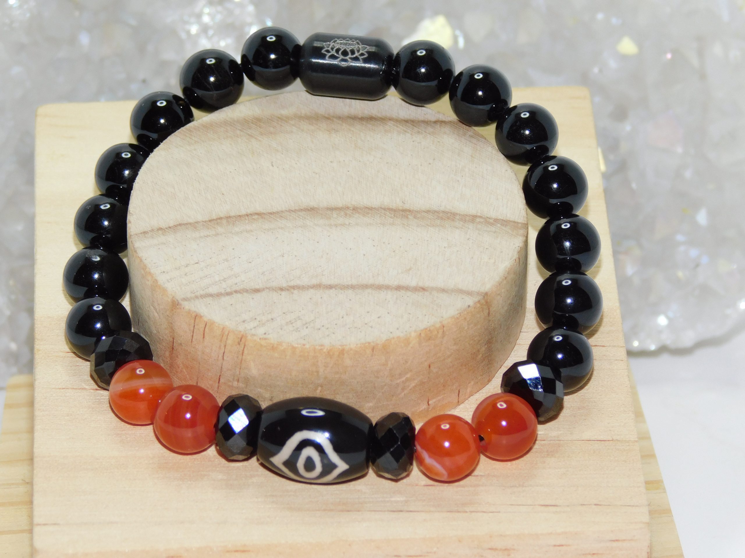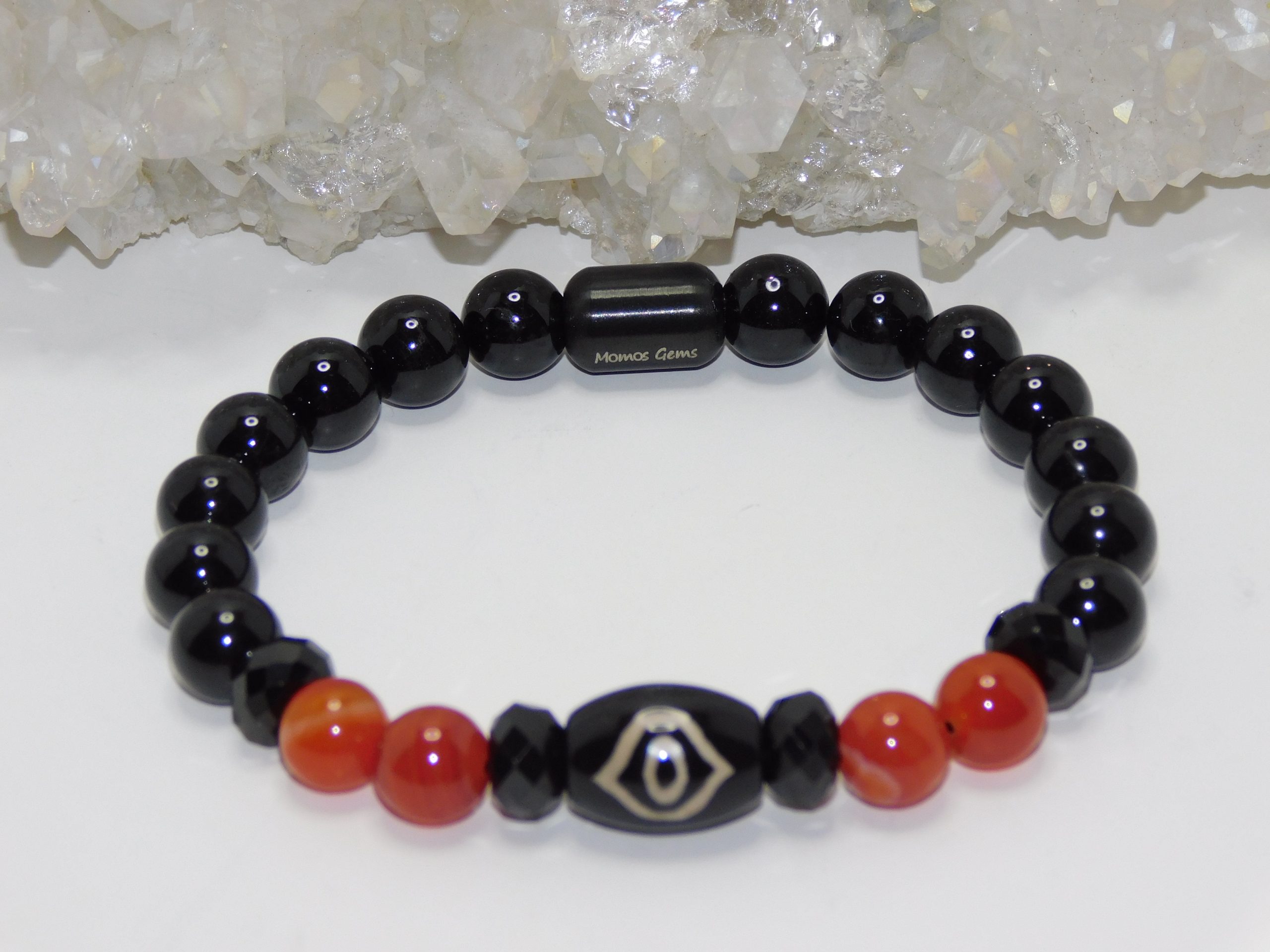 Purchase the Necklace & Bracelet Set and get a Discount: Tibetan Agate Phoenix Eye Dzi, Red Orange Agate & Black Tourmaline Ladies Necklace & Bracelet Set