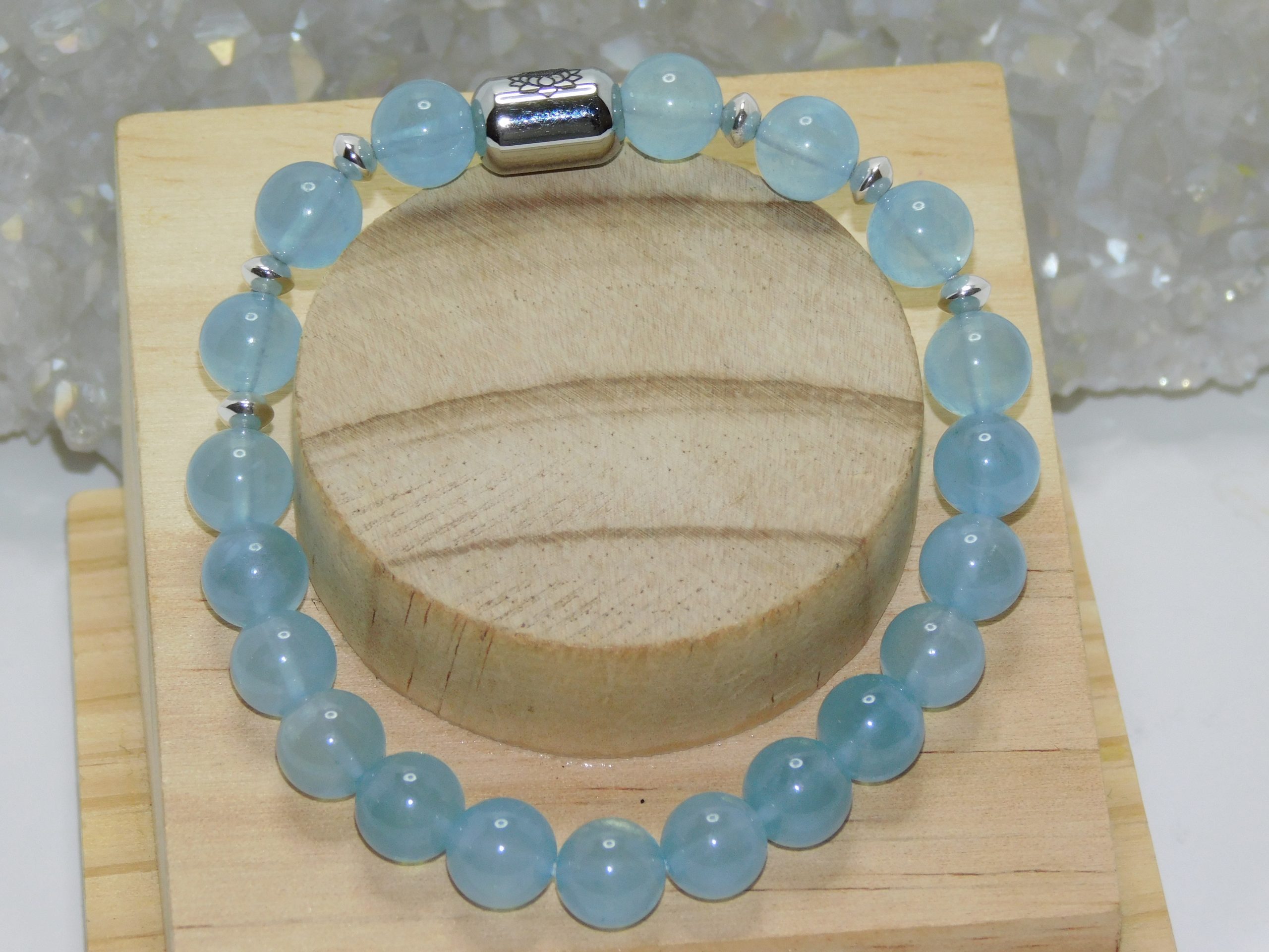 Metaphysical Properties of Blue Aquamarine: Blue aquamarine, a stunning shade of blue-green beryl, is revered for its powerful metaphysical properties. This enchanting gemstone catalyzes spiritual growth, unlocking hidden potentials and enhancing clairvoyance and psychic abilities. Aquamarine embodies a joyful spirit, promoting happiness and “joie de vivre” that uplifts the soul. Aquamarine is particularly beneficial for business professionals. Its vibrant energies enhance ambition and foster persistence in pursuing goals. It acts as a driving force, motivating individuals to stay focused and resilient in their endeavors. On a mental level, aquamarine works wonders by clearing confusion and sharpening intuition, helping one navigate complexities with clarity and confidence. This remarkable stone is known for its protective qualities, adeptly deflecting negativity on all levels and creating a shield that fosters positivity and serenity. (Grammarly AI, 2024)