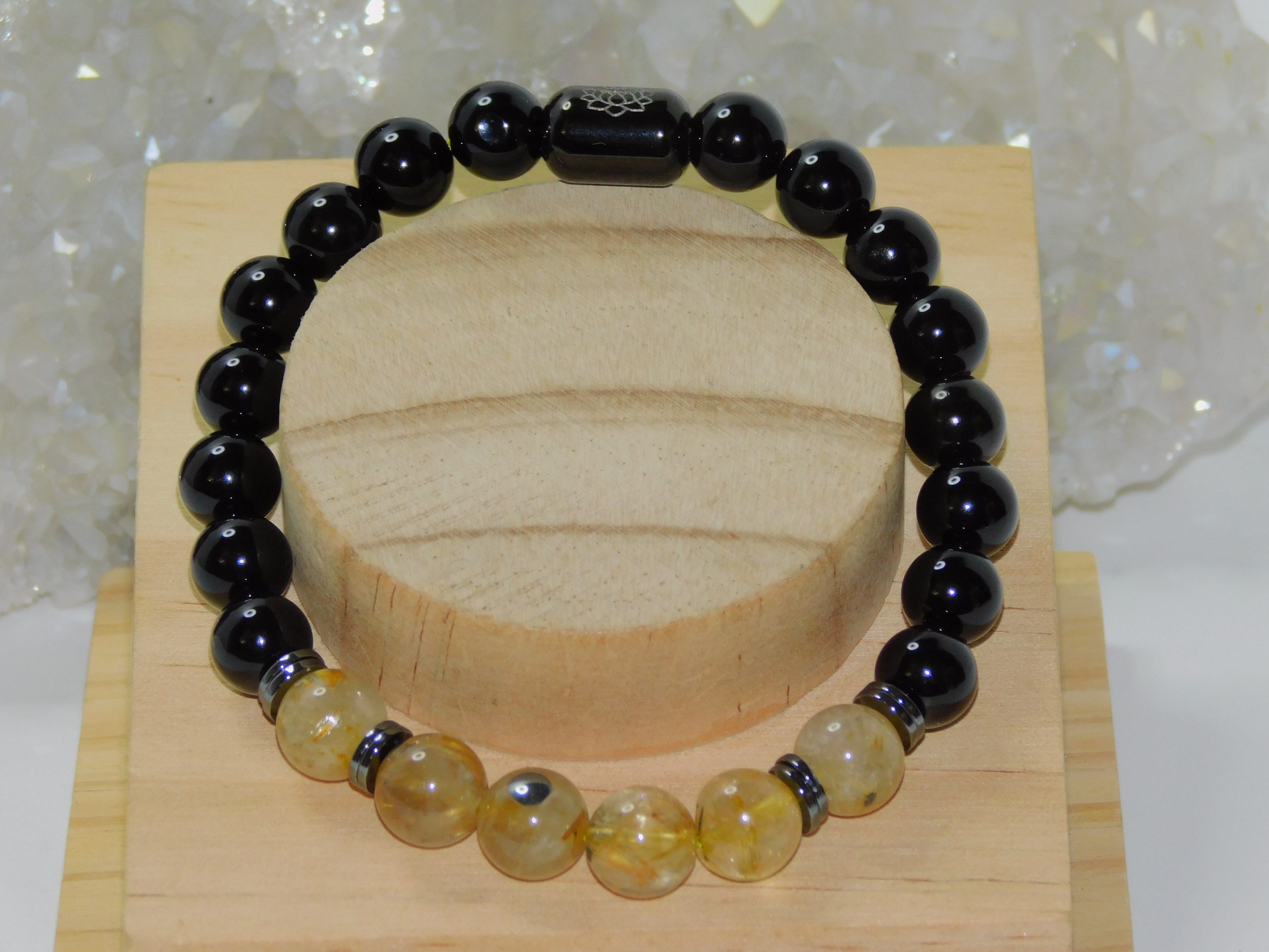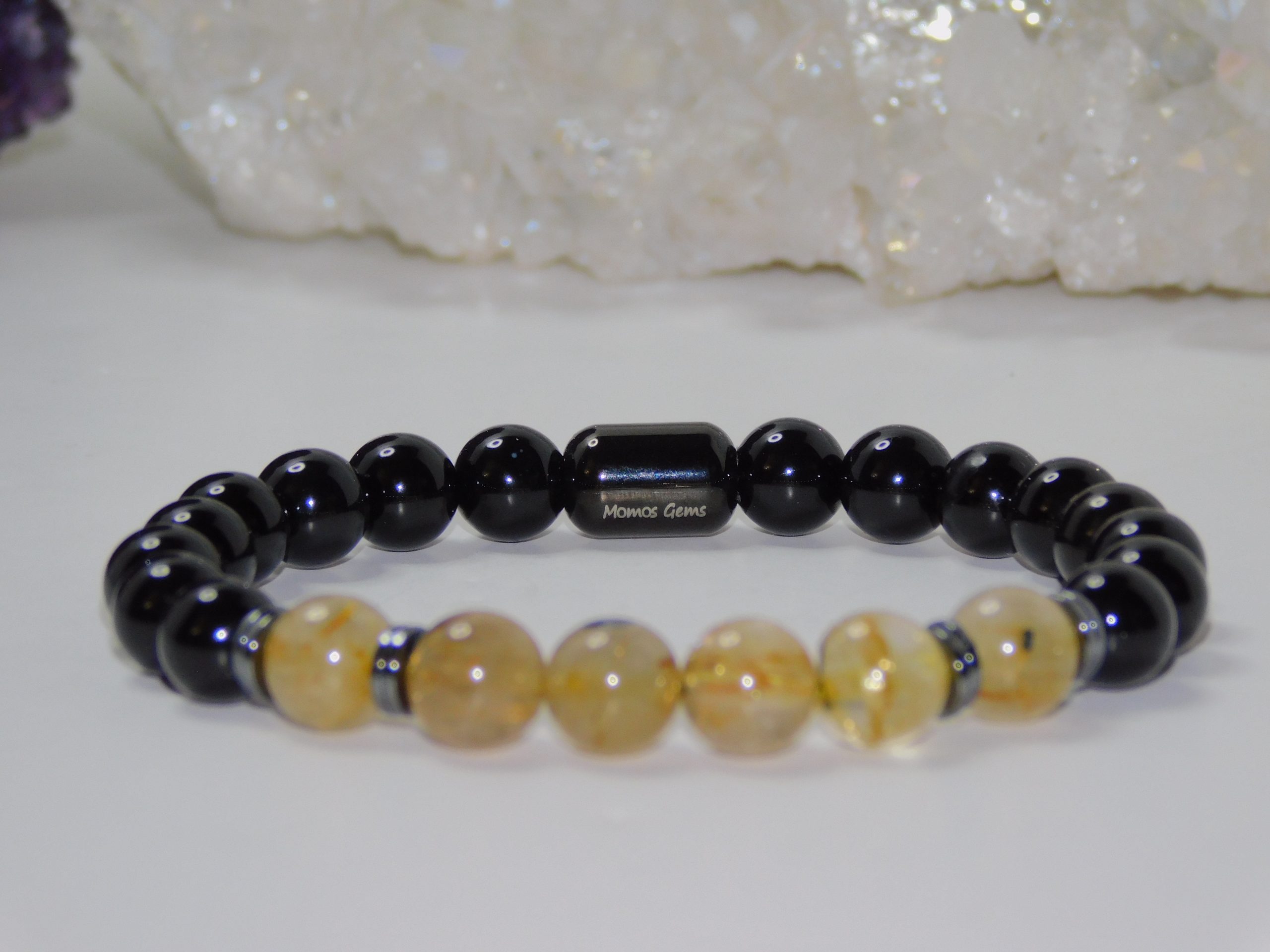 Metaphysical Properties of Golden Rutilated Quartz: The Golden Rutilated Quartz featured in this bracelet is an extraordinary Gemstone of the Quartz family. Comprised of silicon dioxide with titanium dioxide inclusions, this rare and unique variety of Golden Rutilated Quartz also contains Hematite, giving it an exquisite sheen and additional metaphysical properties. The Golden Rutilated Quartz is known for its remarkable power to stimulate intuition, help manifest innermost desires, and facilitate connections with the spiritual realm. The Hematite inclusion adds grounding and protection properties. This Gemstone combination can promote luck, abundance, and prosperity while keeping you safe and protected. Its captivating allure makes it a genuinely enchanting gemstone. (Grammarly AI, 2024).