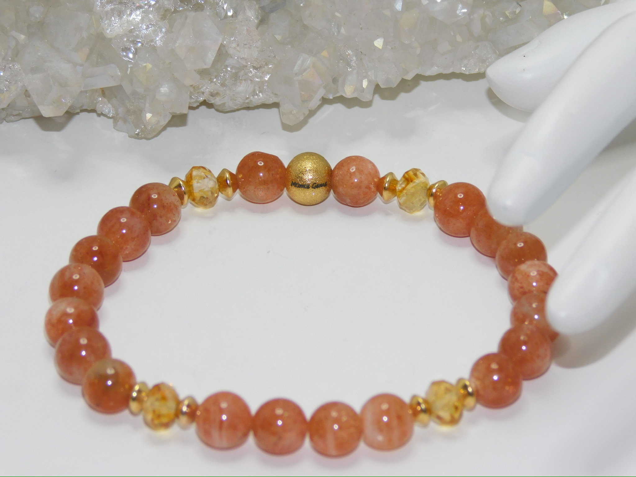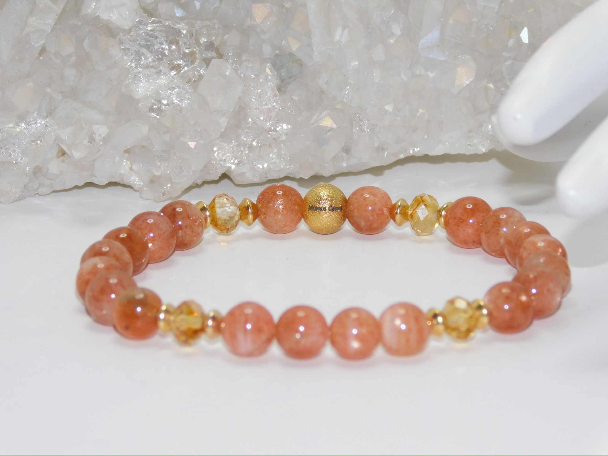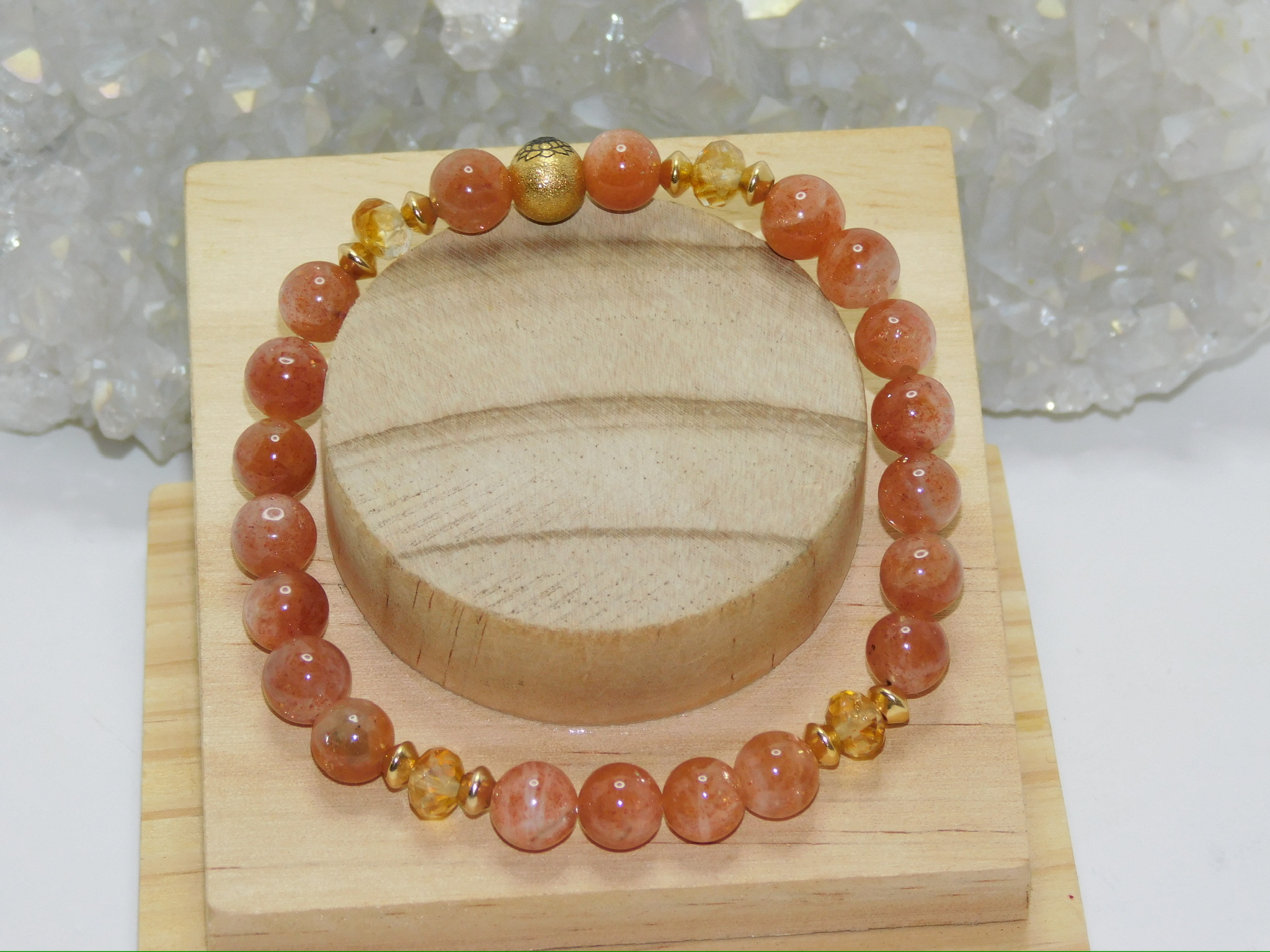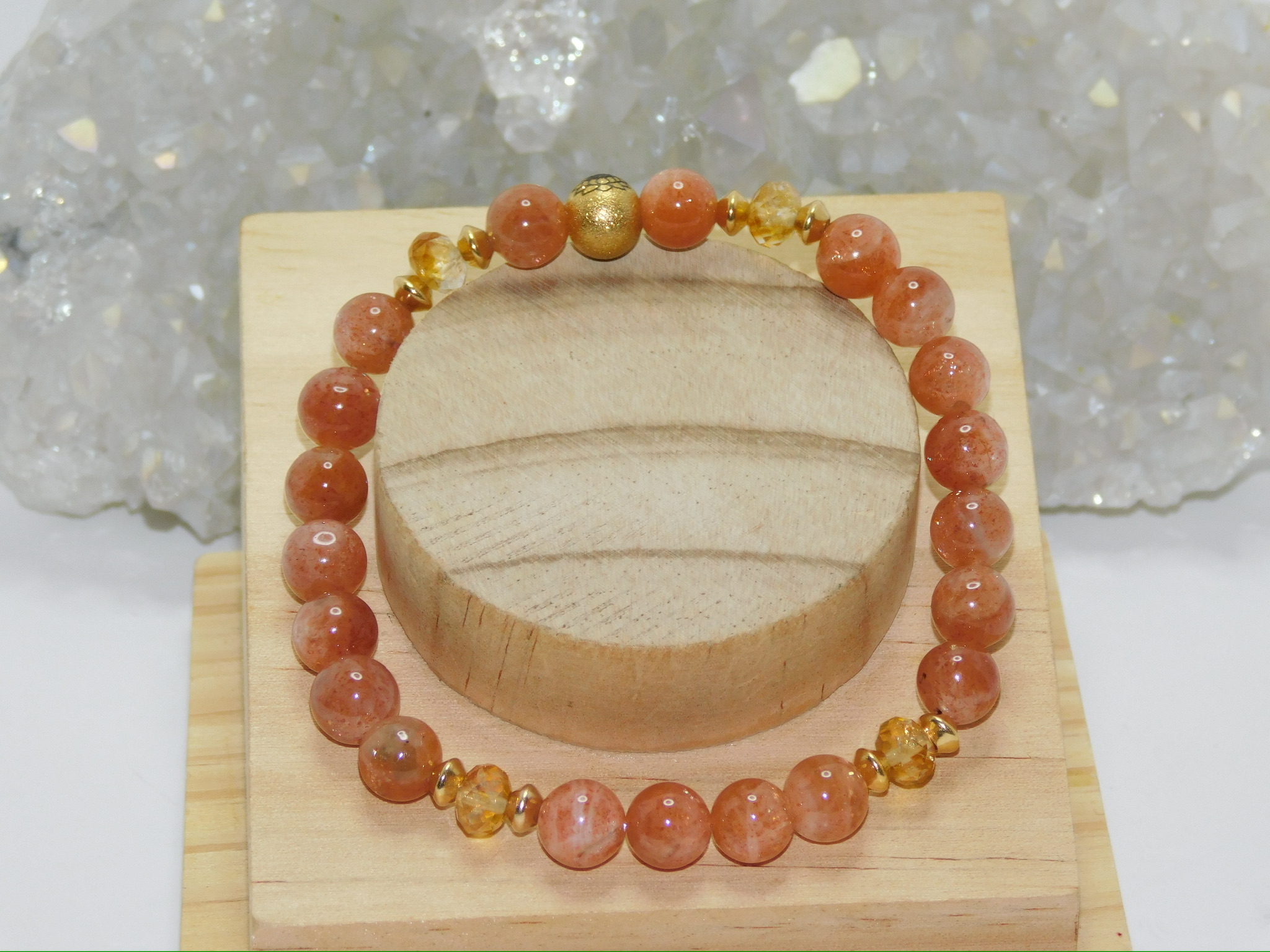 This Ladies Stretchy Bracelet uses Grade AAA Fiery Sunstone & Citrine Beads.