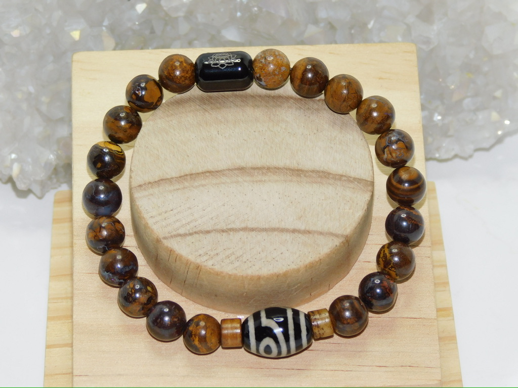 TIBETAN Dzi Bead: Tibetan Dzi Beads (pronounced Zee Beads) are made from Agate and come in oblong, round, cylindrical, or tabular shapes. They are also known as “Heaven’s Beads,” which means “shine, brightness, clearness, splendor.” These beads have been around for about 2,000 years and are closely associated with Tibetan culture, notably Buddhism. The most popular Dzi beads are the Ancient Beads with Eyes, which Tibetans consider a gift from heaven. These beads have intricate designs, often featuring eyes, waves, or symbols, and each pattern is known to carry unique meaning and provide special energy. If you’re selecting Dzi Bead Jewelry, it’s essential to take your time, feel a connection with the bead, and follow the instructions on how to care for it.