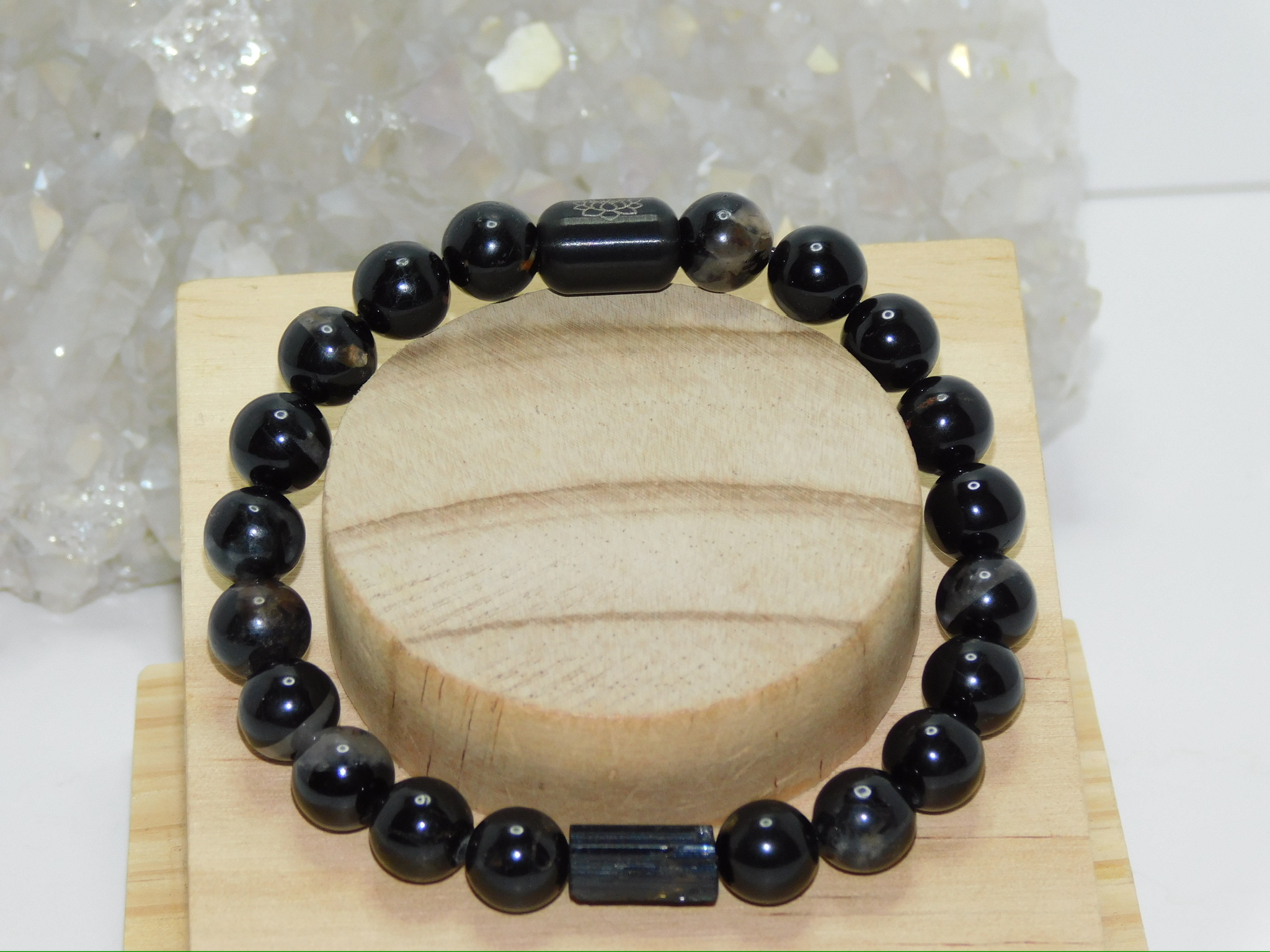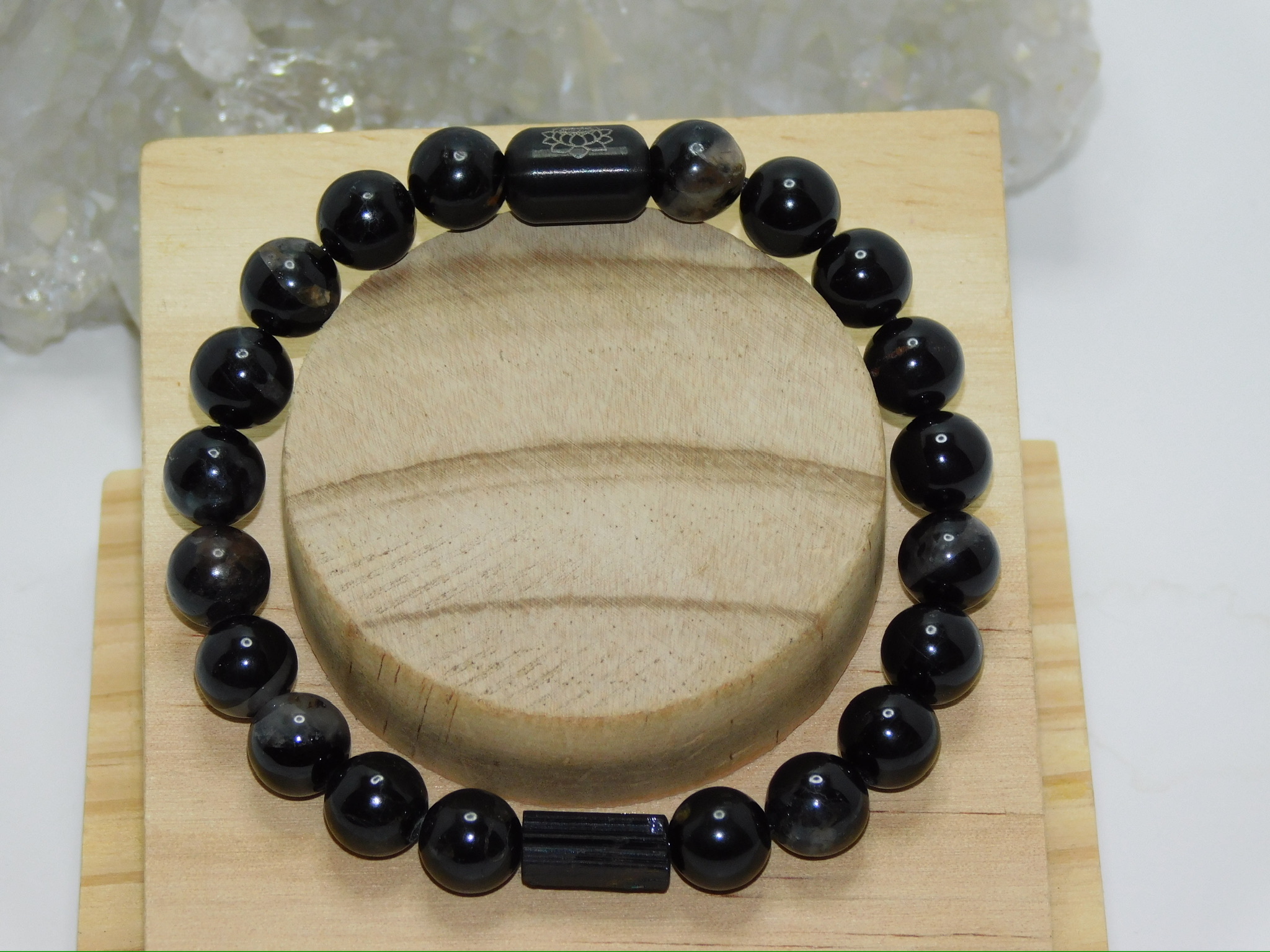 MomosGems Jewelry comes with an accent bead in either Sterling Silver, Sterling Silver Gold, or Sterling Silver Black, in a Circular, Oval, Cylinder, or round shape. On one side of the bead is the symbol of the Lotus Flower, symbolizing spirituality, enlightenment, and peace. On the inside is our logo, MomosGems.