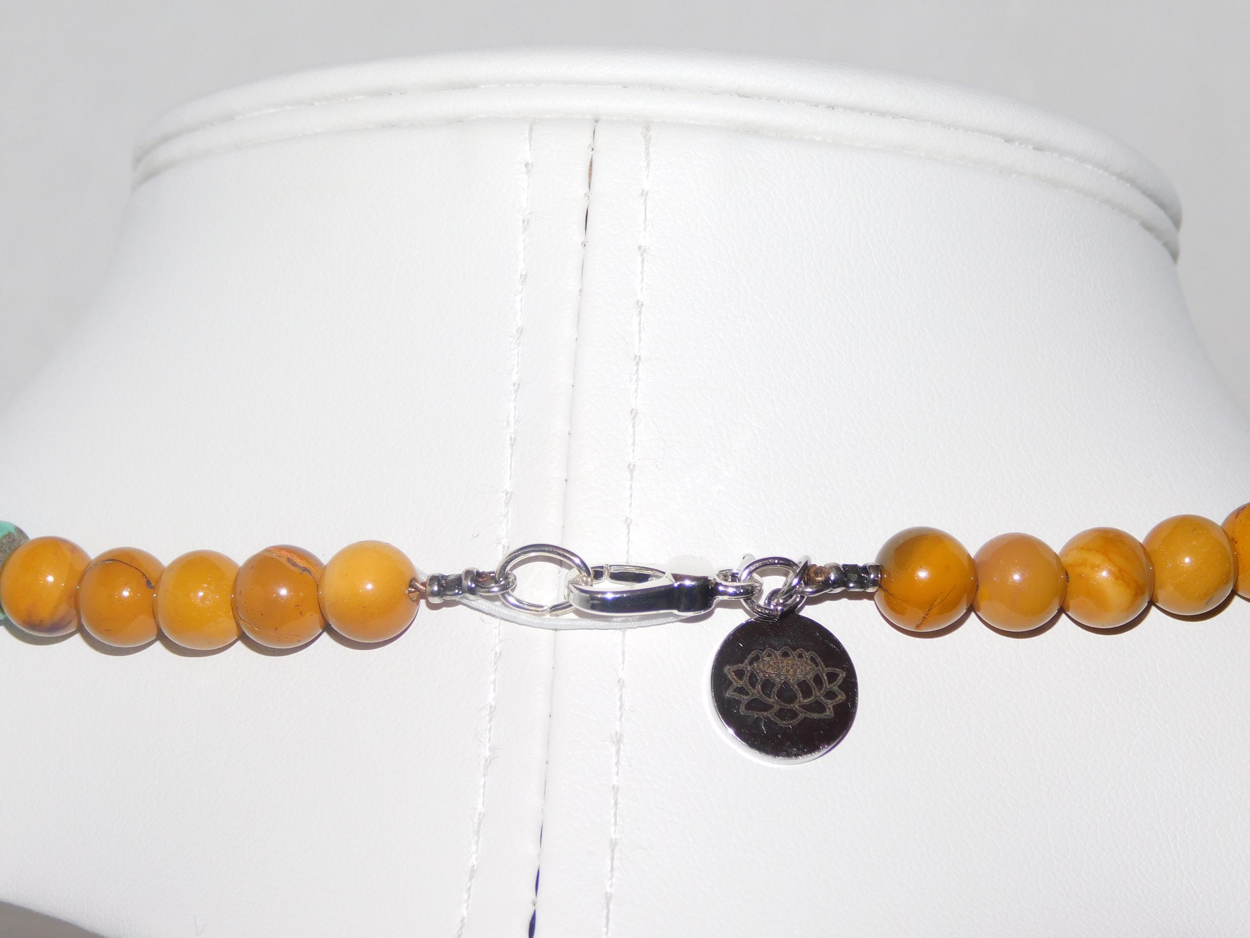MomosGems Jewelry comes with an accent bead in either Sterling Silver, Sterling Silver Gold, or Sterling Silver Black, in a Circular, Oval, Cylinder, or round shape. On one side of the bead is the symbol of the Lotus Flower, symbolizing spirituality, enlightenment, and peace. On the inside is our logo, MomosGems.