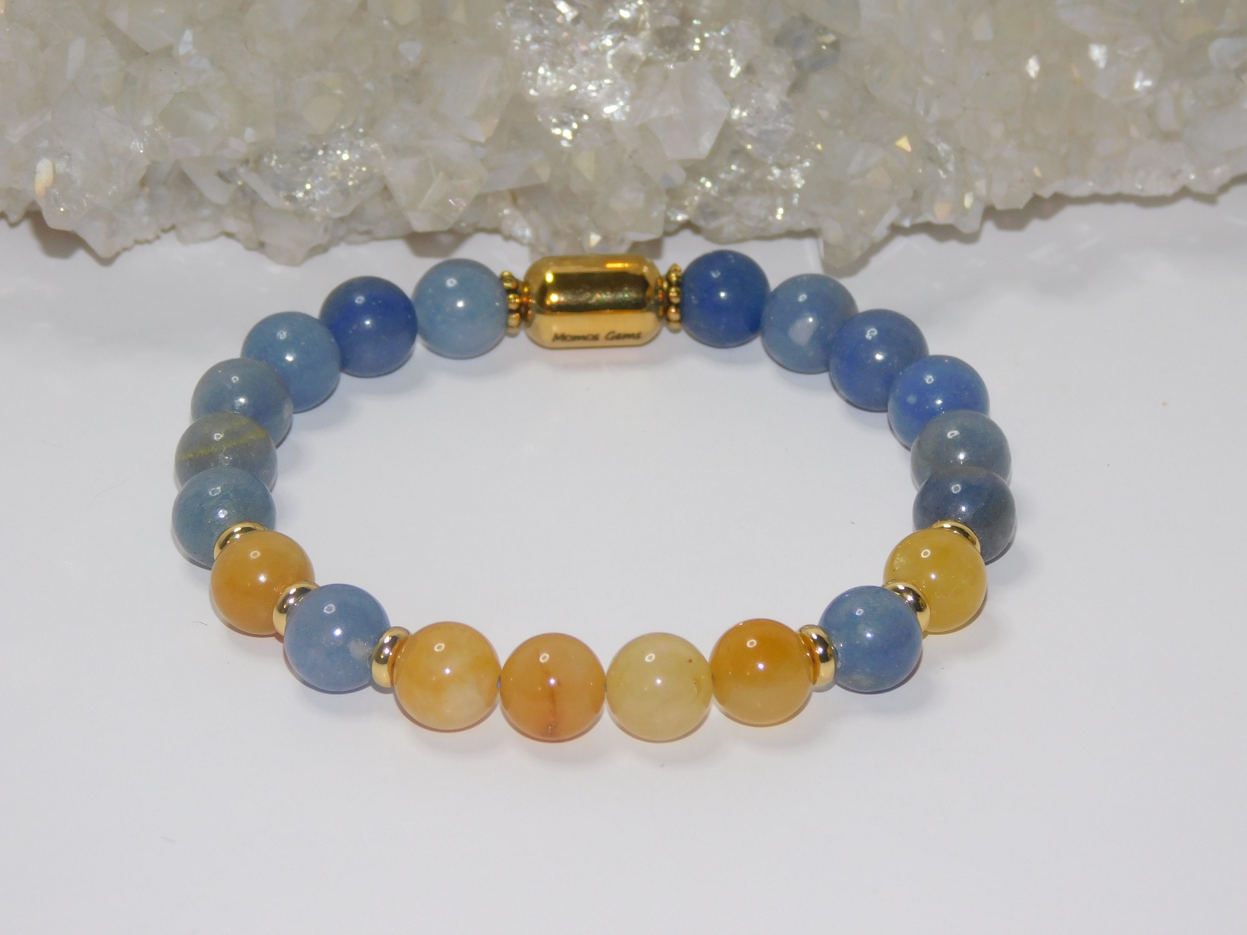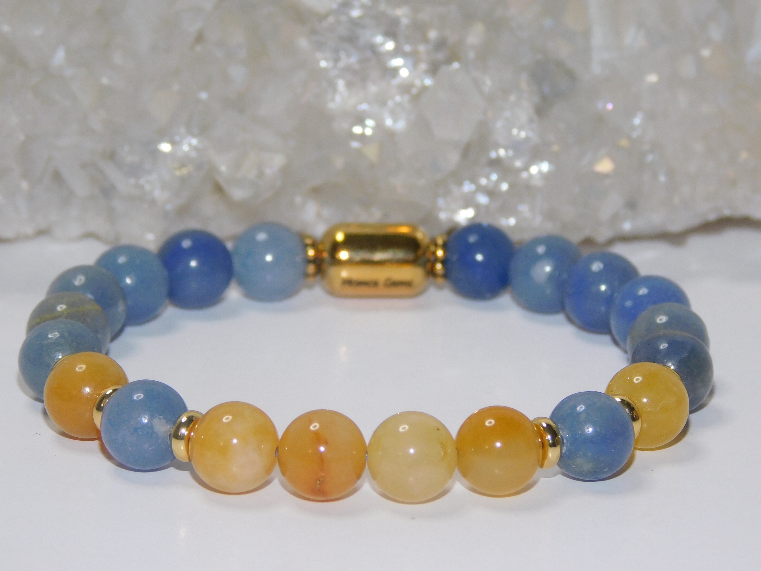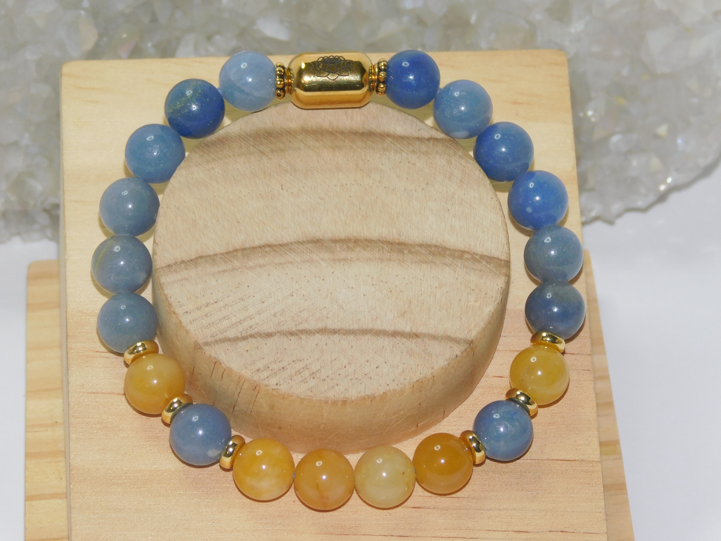 Metaphysical Properties of Yellow & Blue Aventurine: Yellow & Blue Aventurine Gemstone is a member of the Quartz family. Its vibrant yellow & Blue color distinguishes is due to the Iron and Mica particles within the stone. Yellow Aventurine is a stunning crystal renowned for its metaphysical properties, as it is known to be a powerful stone of prosperity, joy, and happiness. It is said to inspire its owner to appreciate life and share kindness with the world. Blue Aventurine is an excellent stone for calming and reducing stress and anxiety while promoting relaxation. Blue Aventurine is best known for deflecting negative energies, cultivating inner peace, activating the throat chakra, improving communication, and expressing your thoughts and feelings clearly.